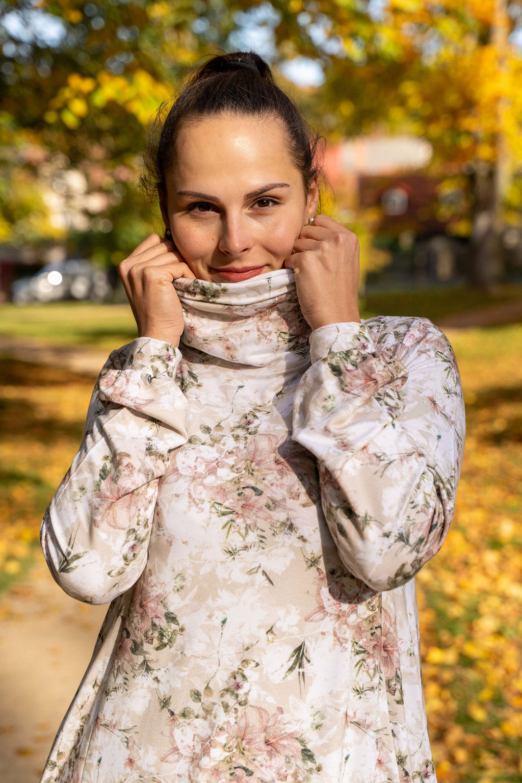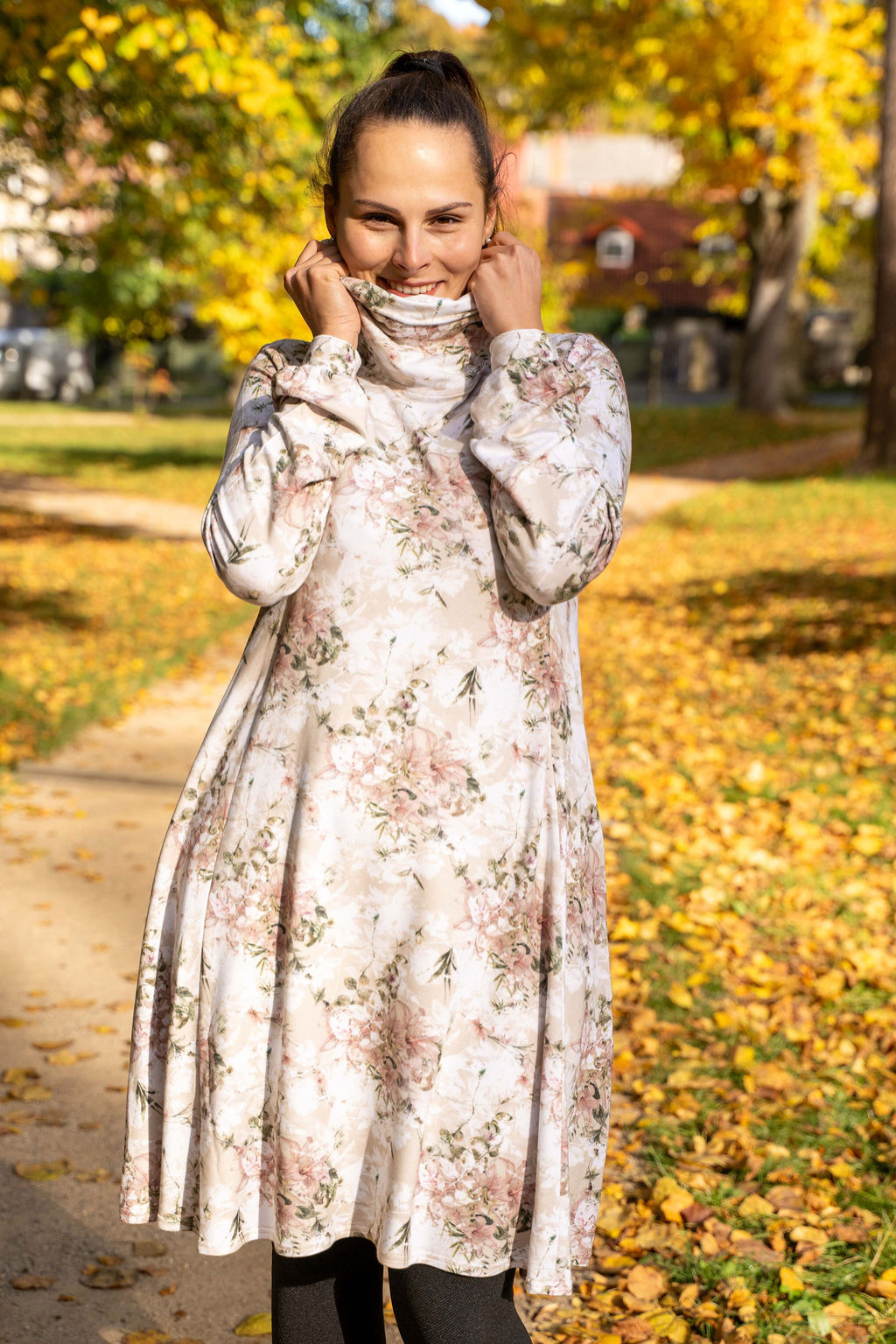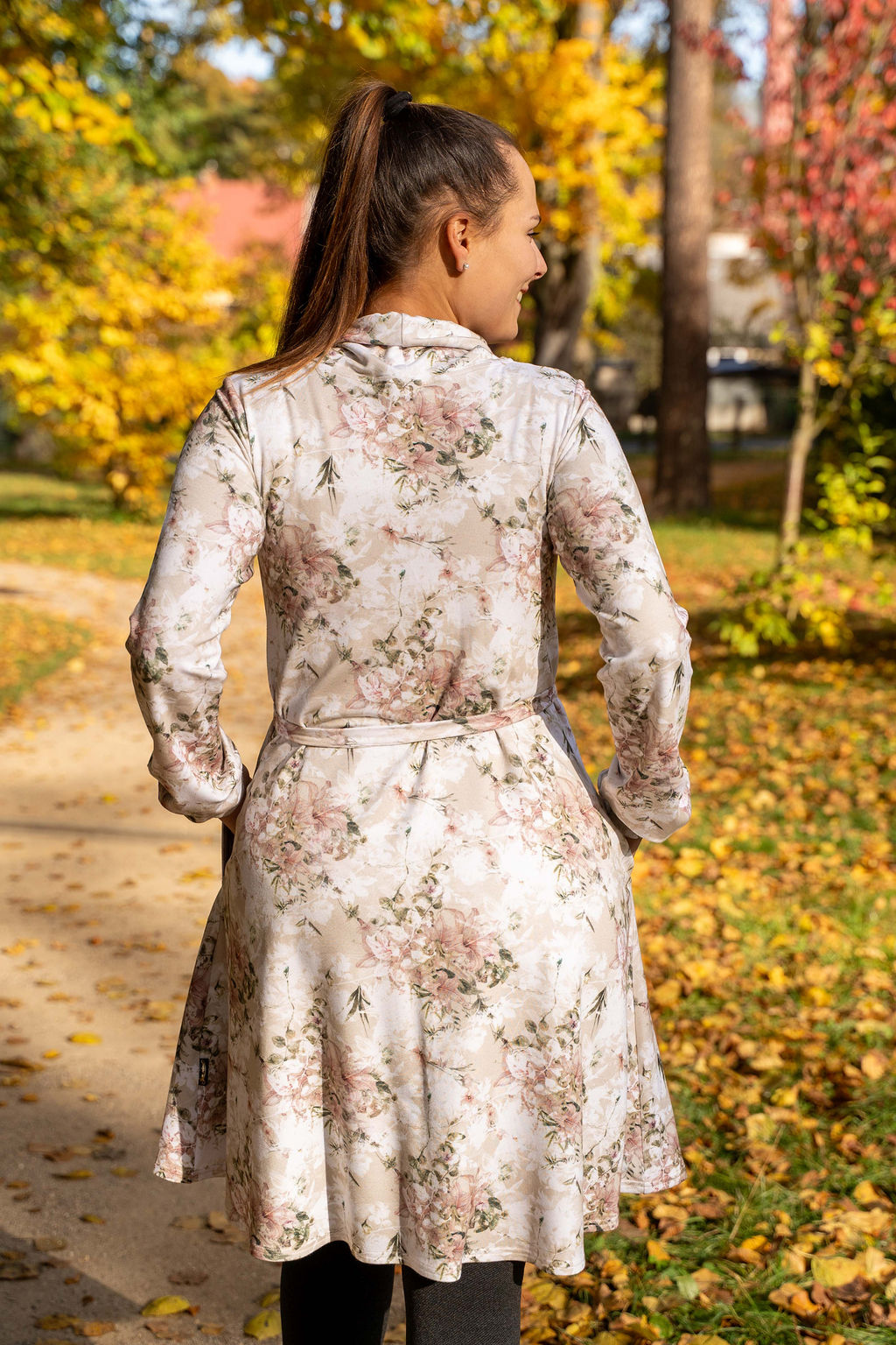 Zimní bambusové kojicí šaty se skrytými zipy – květované