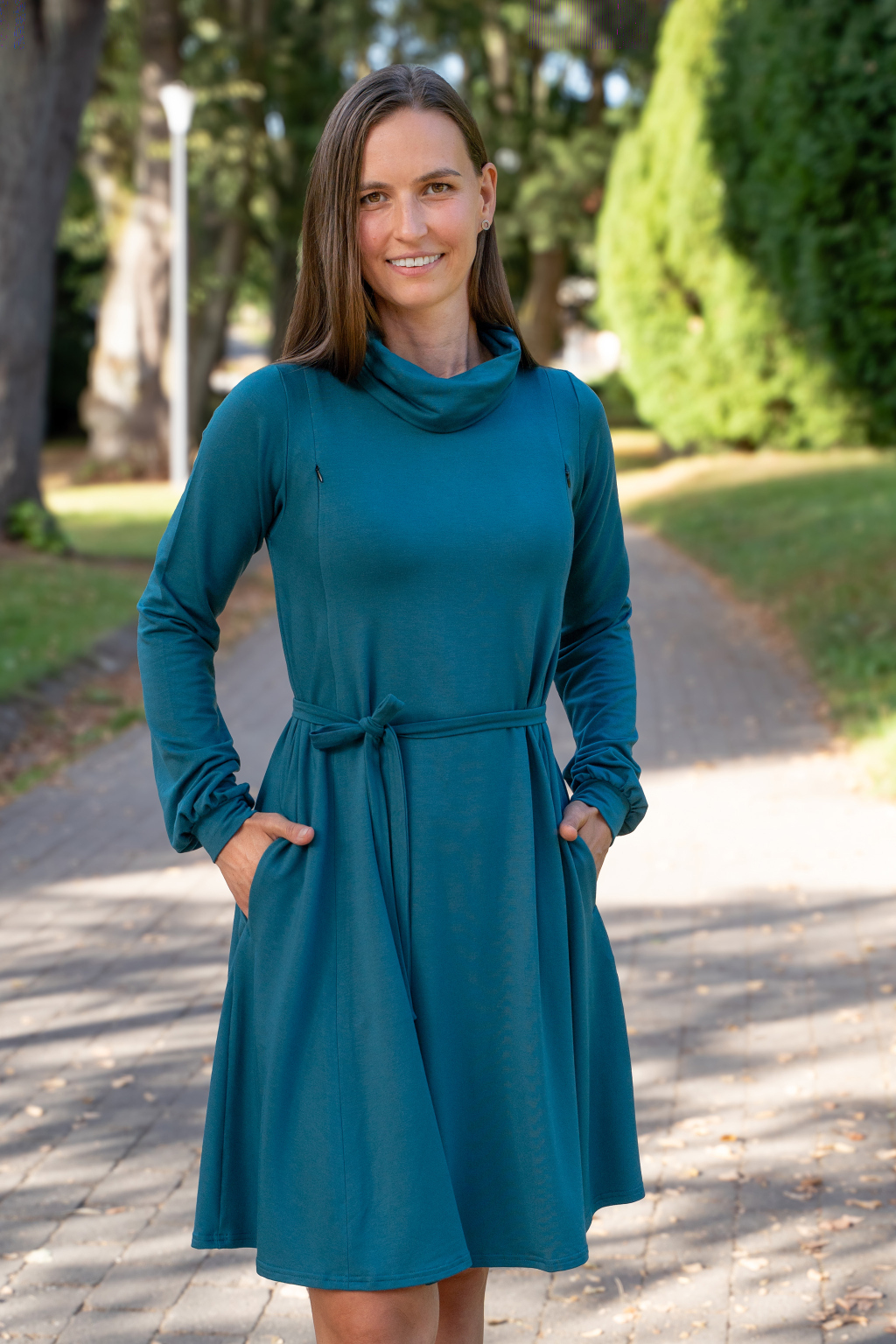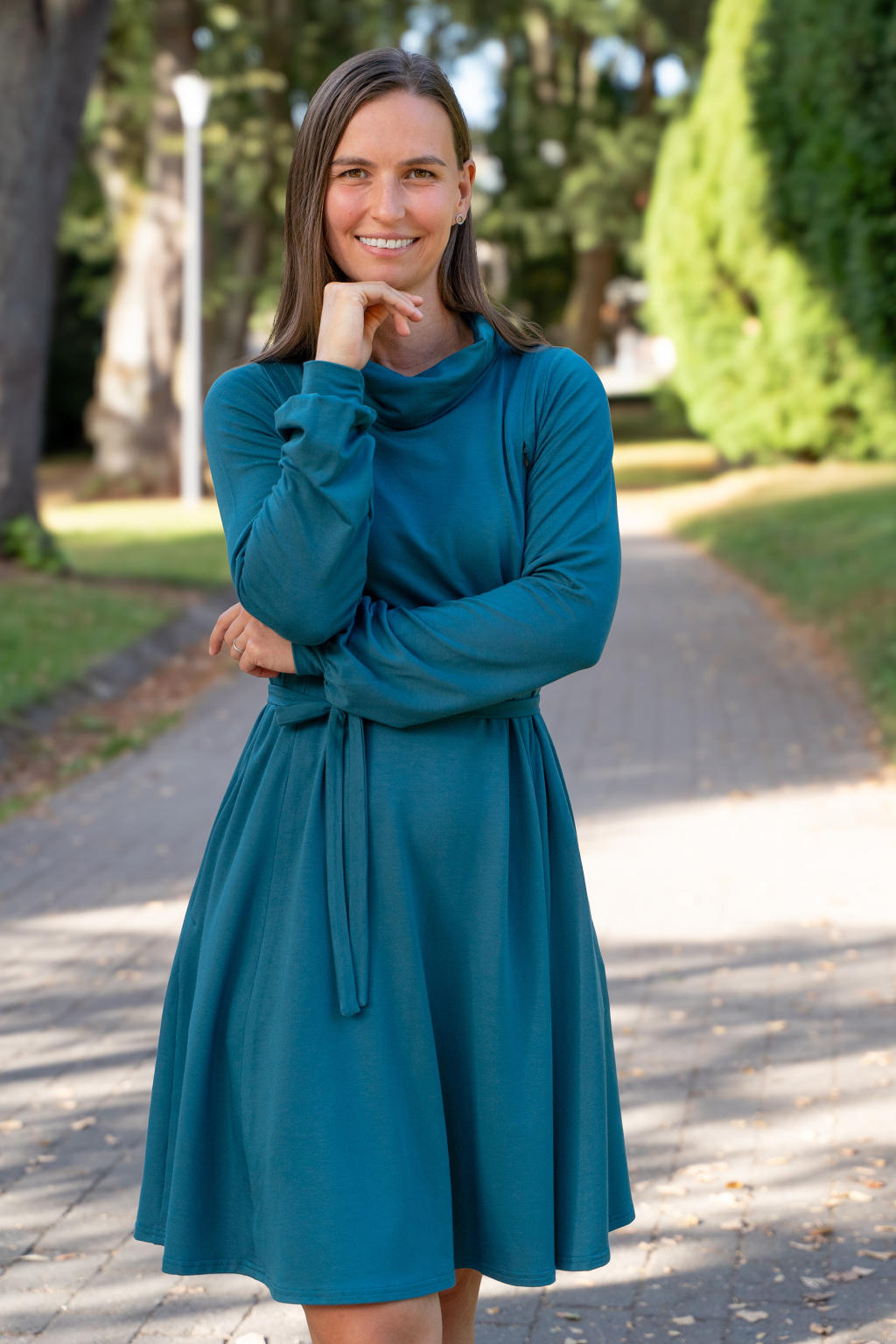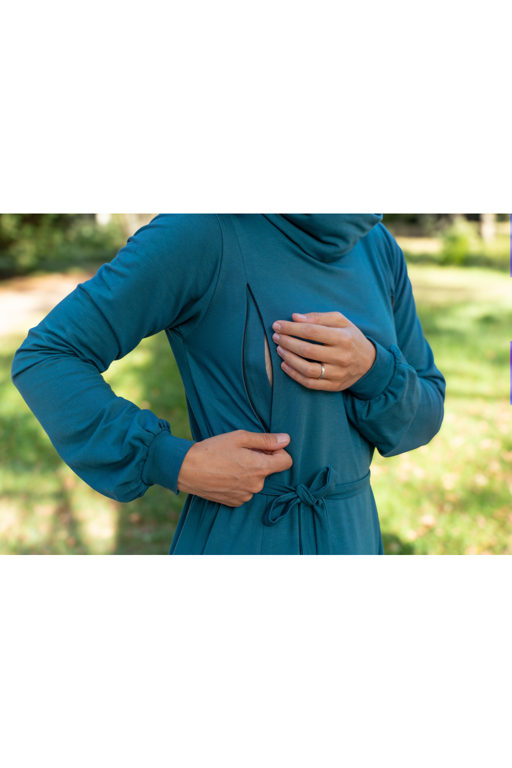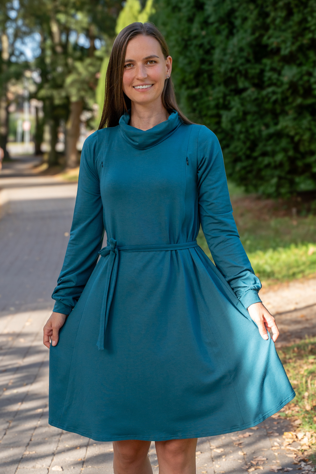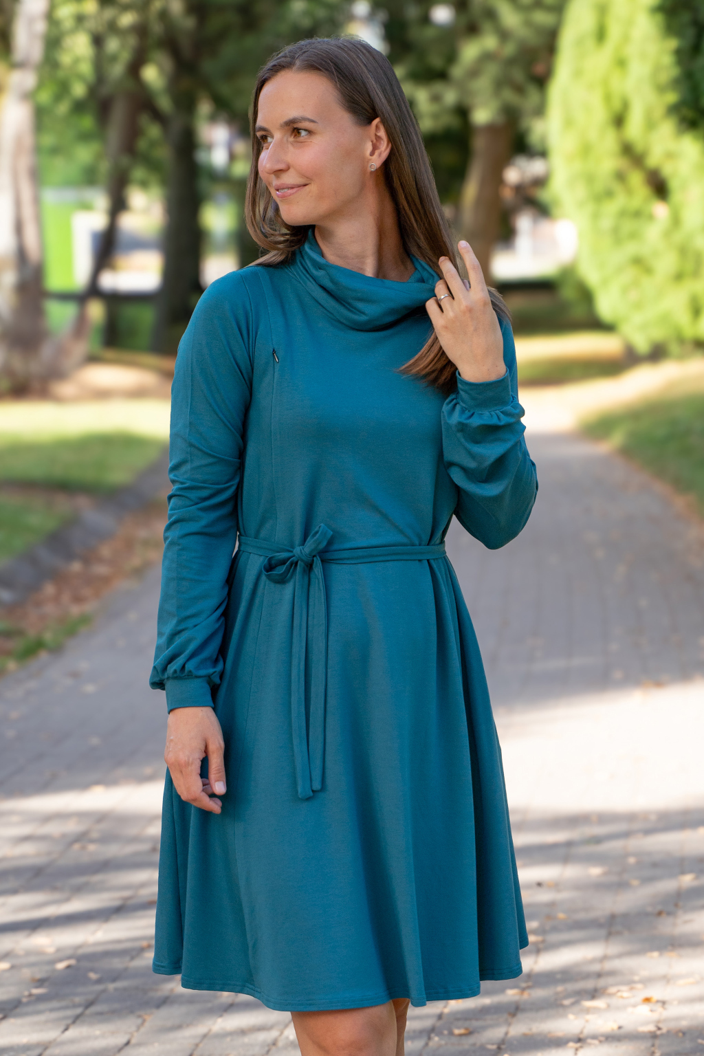 Zimní bambusové kojicí šaty se skrytými zipy – petrolejové