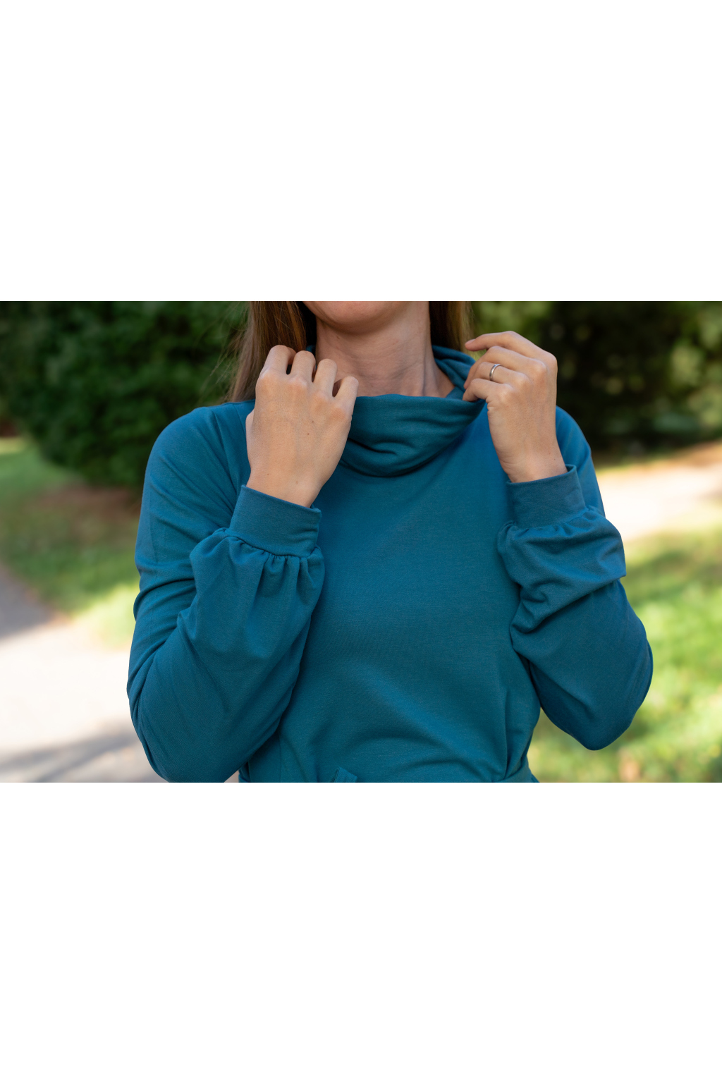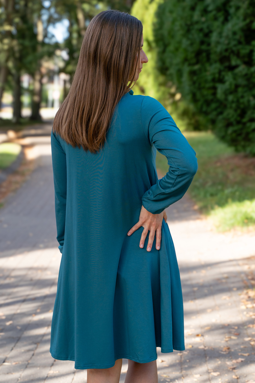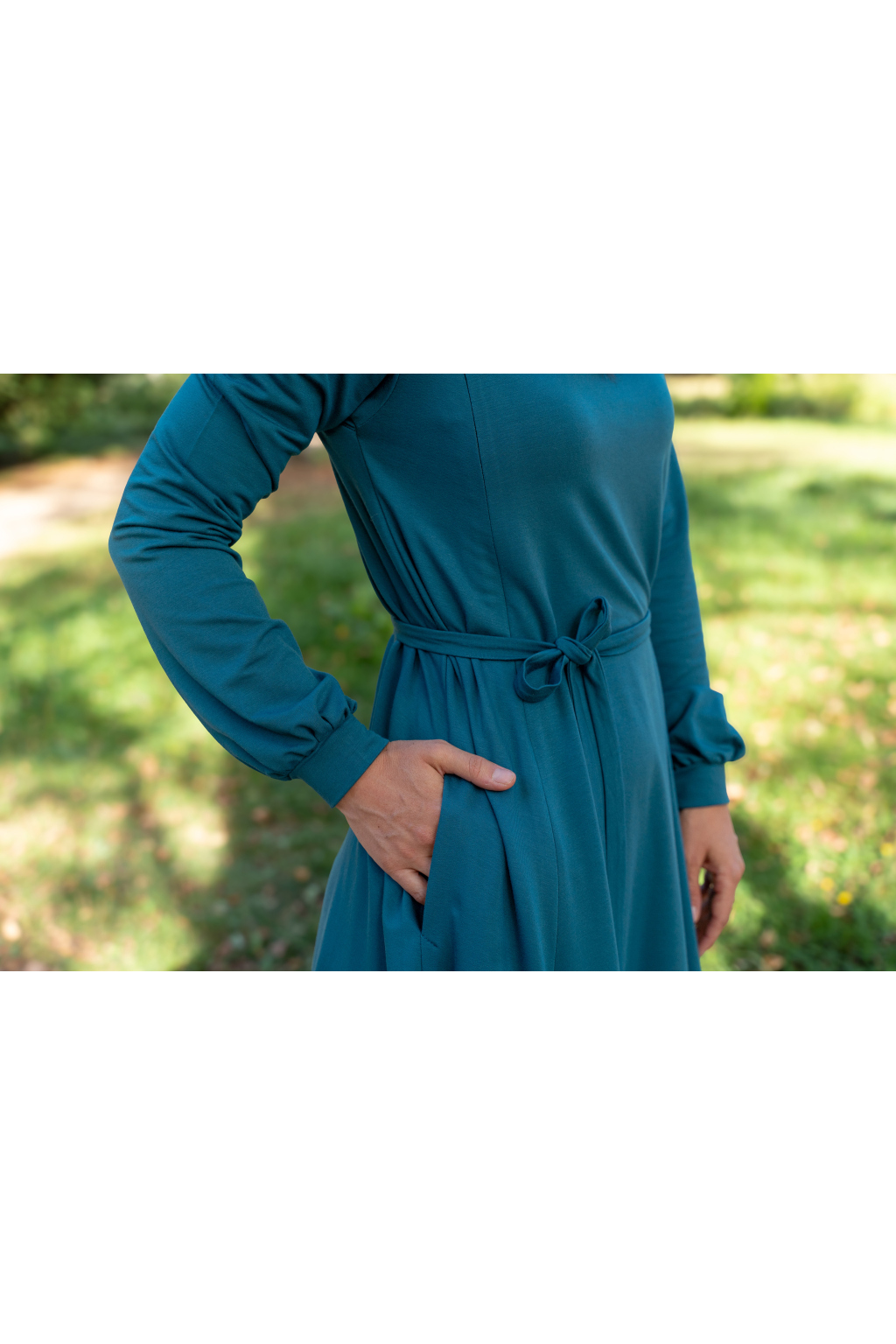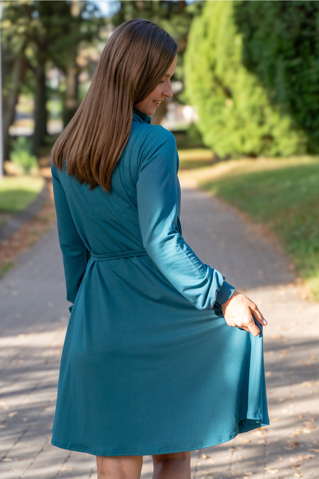 Zimní bambusové kojicí šaty se skrytými zipy – petrolejové