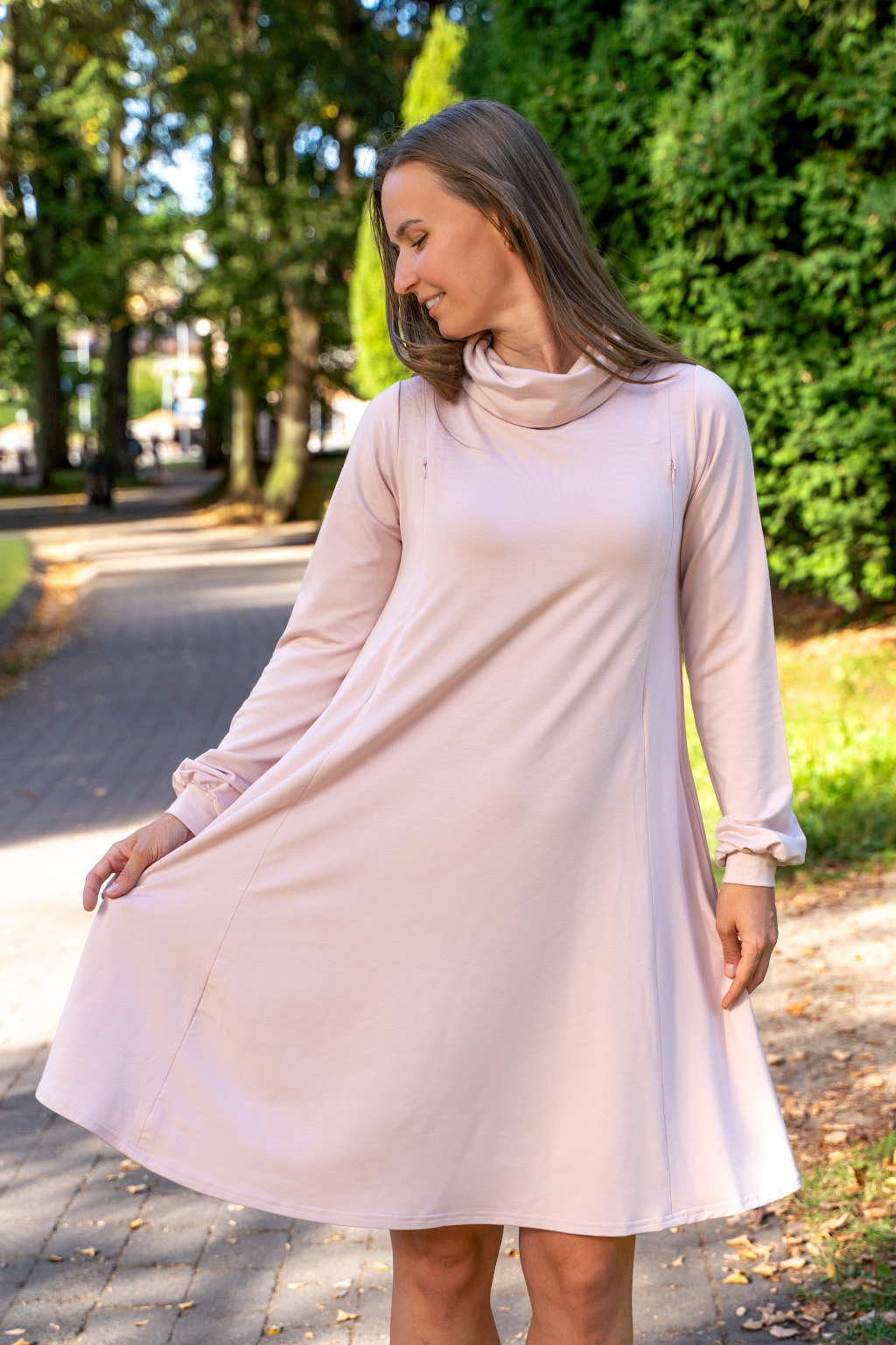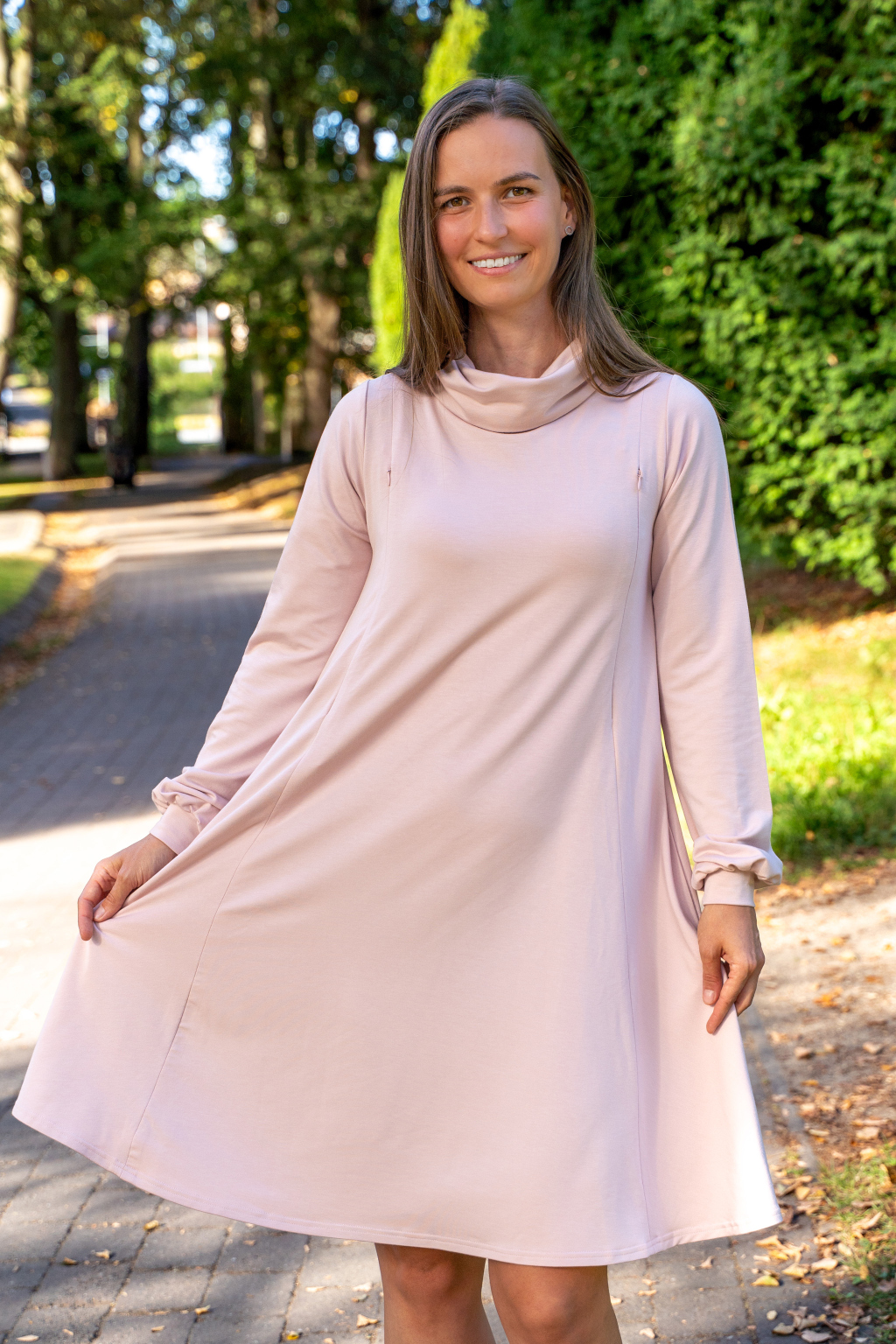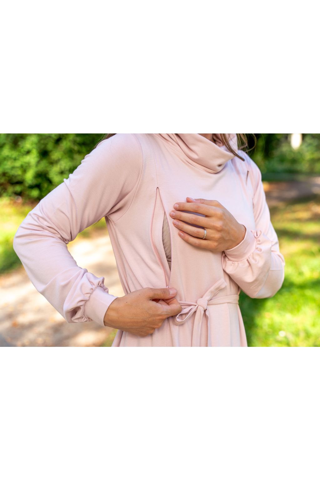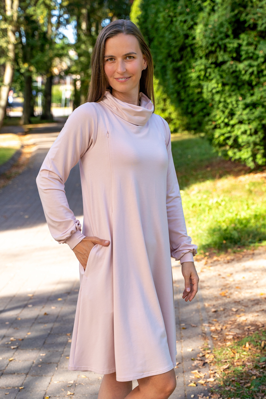 Zimní bambusové kojicí šaty se skrytými zipy – pudrově růžové