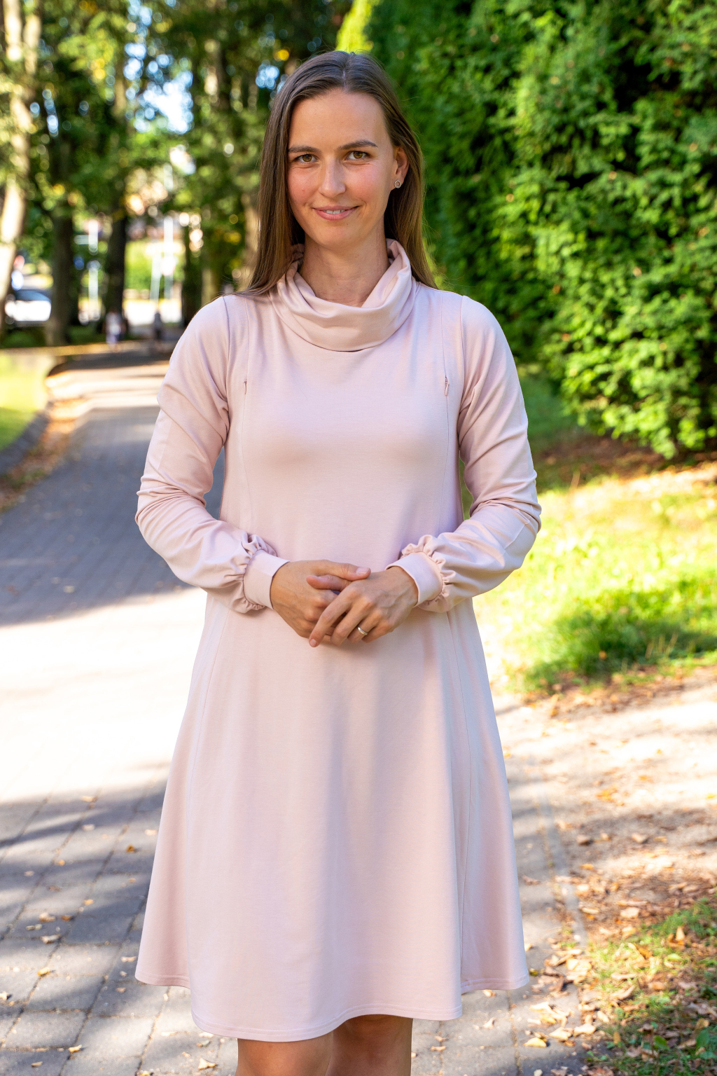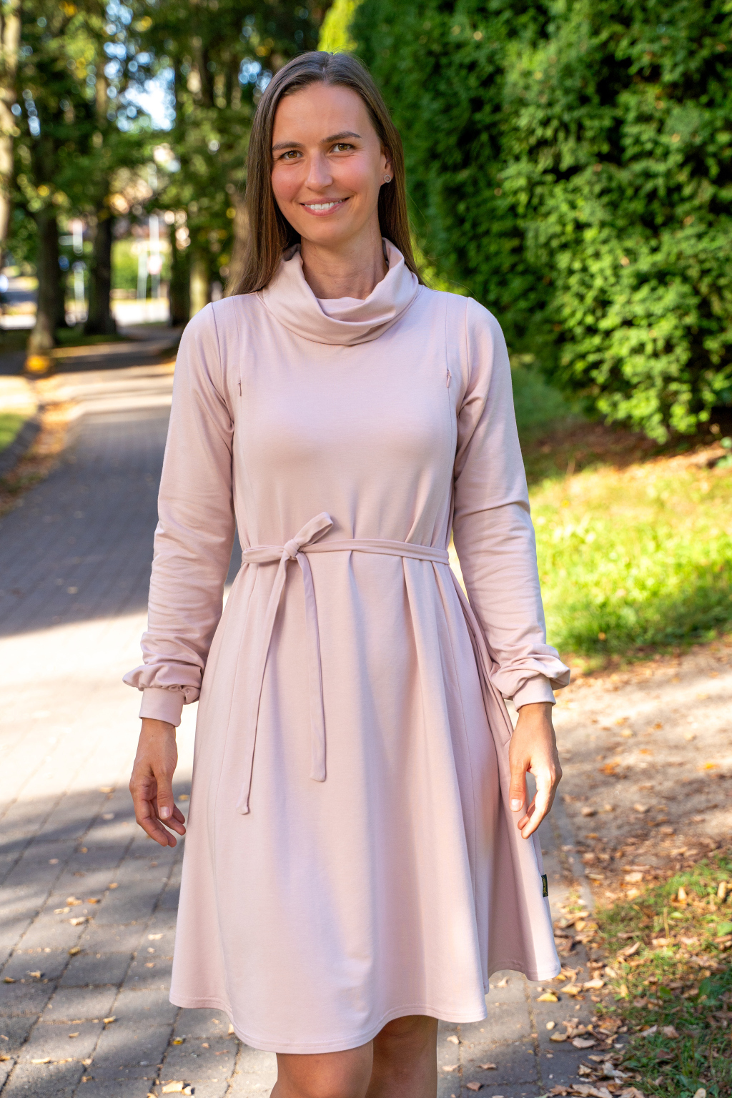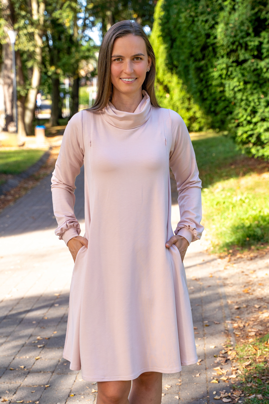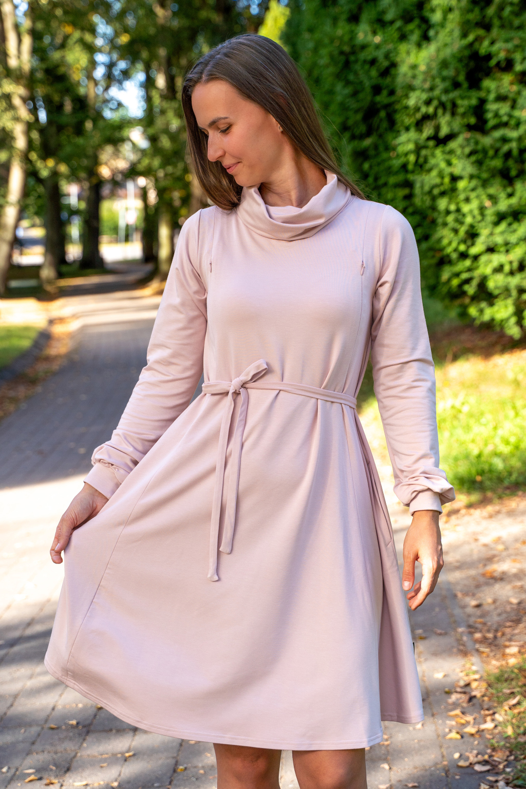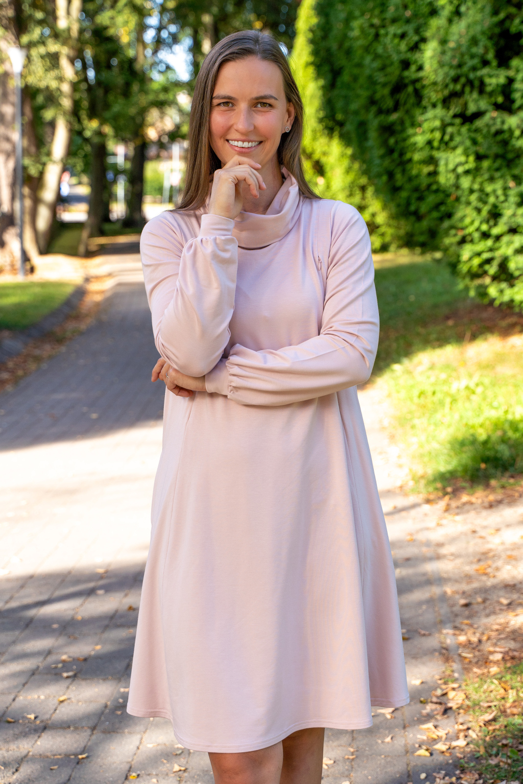 Zimní bambusové kojicí šaty se skrytými zipy – pudrově růžové