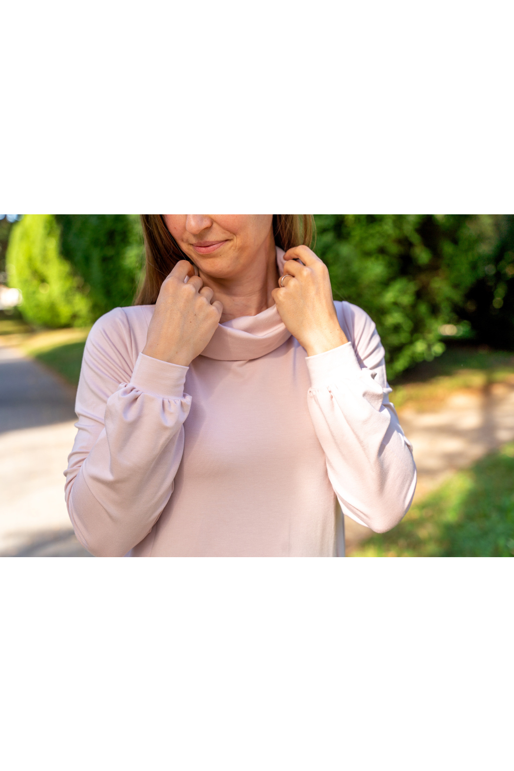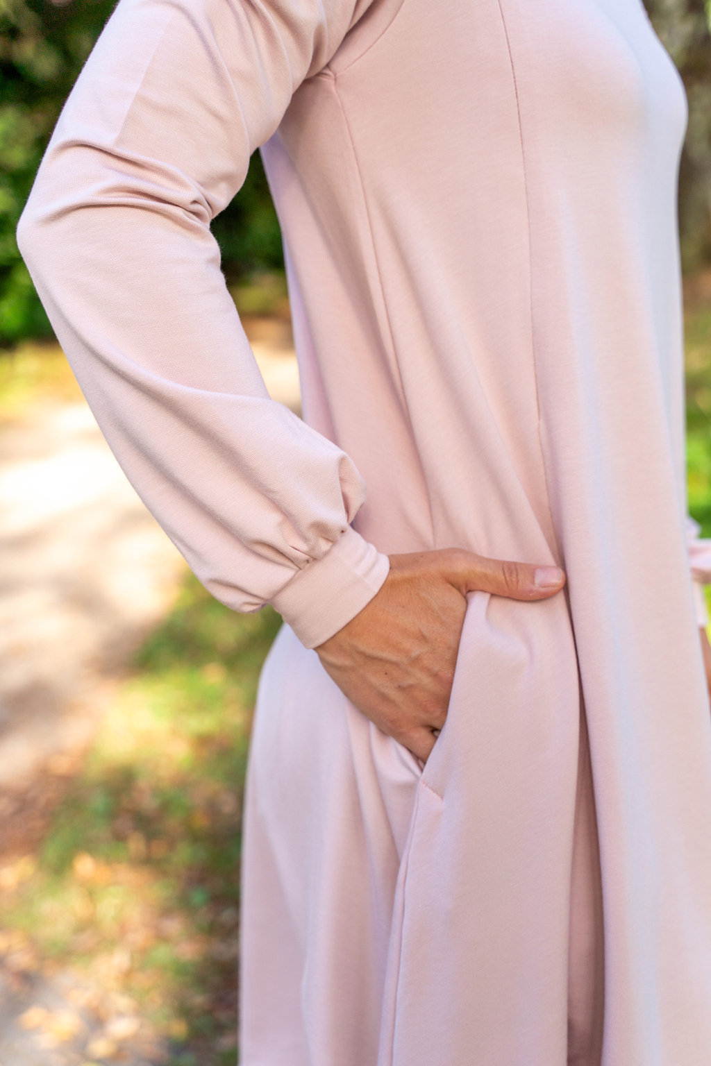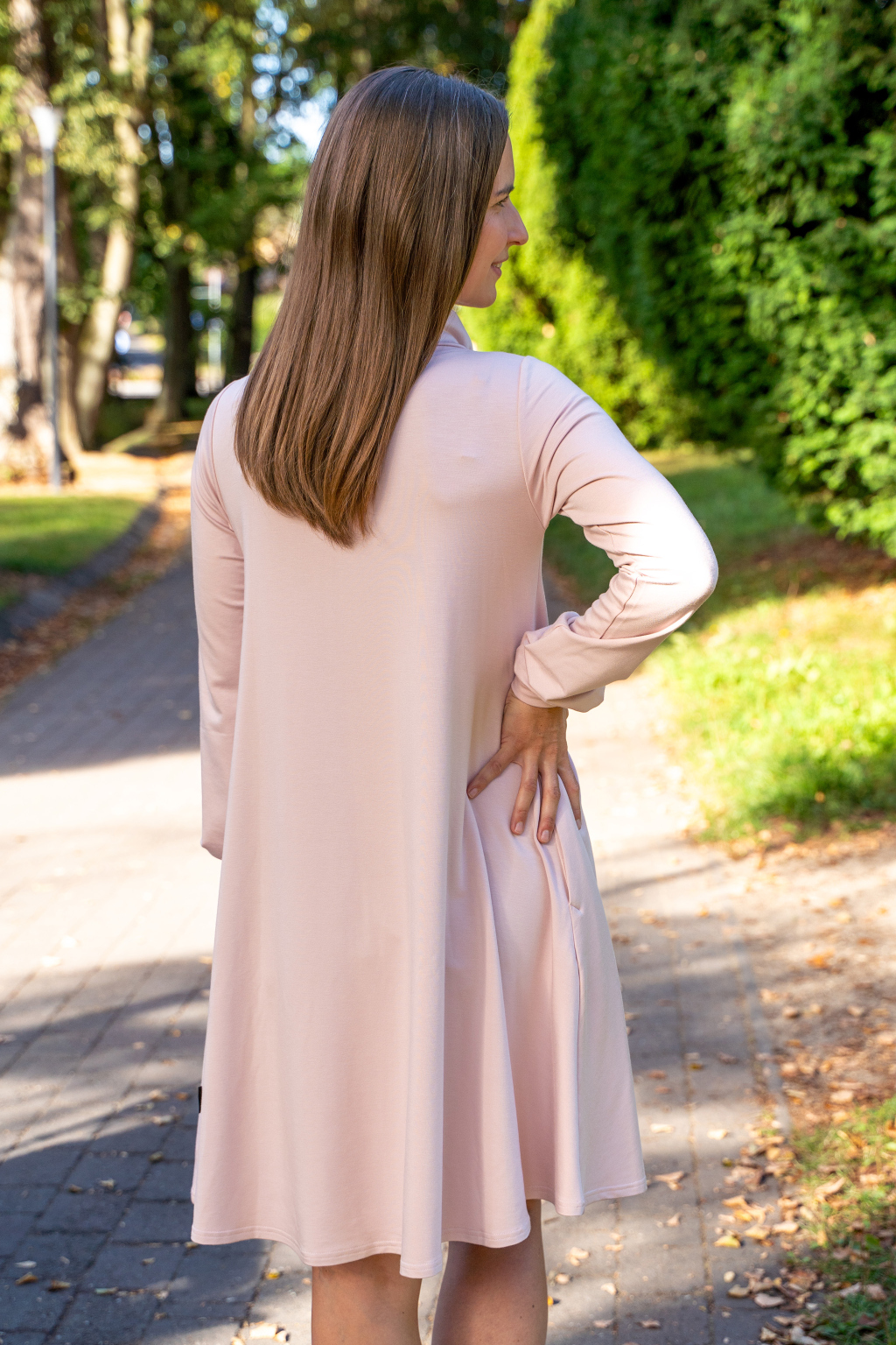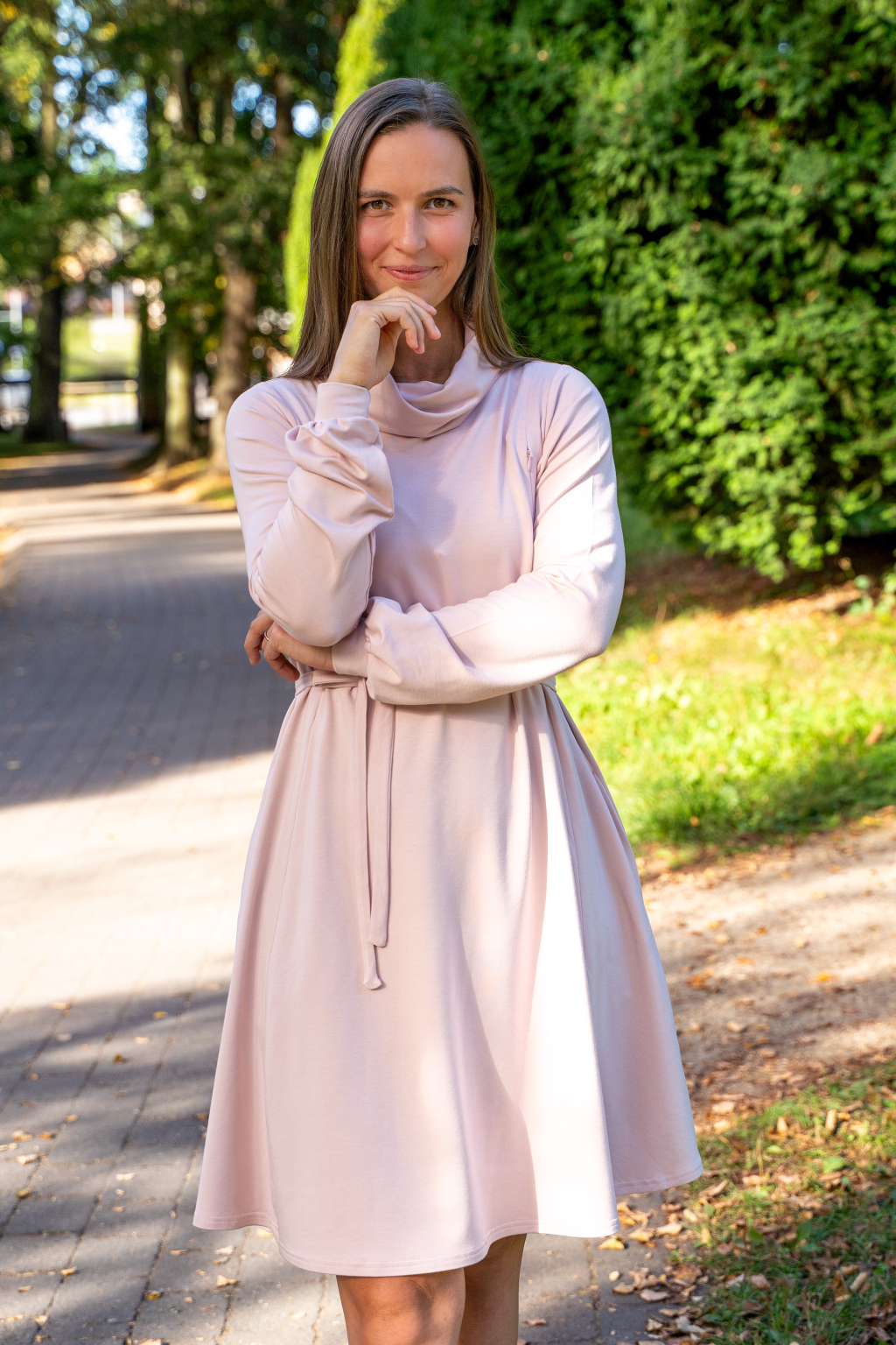 Zimní bambusové kojicí šaty se skrytými zipy – pudrově růžové