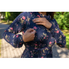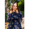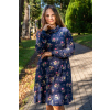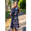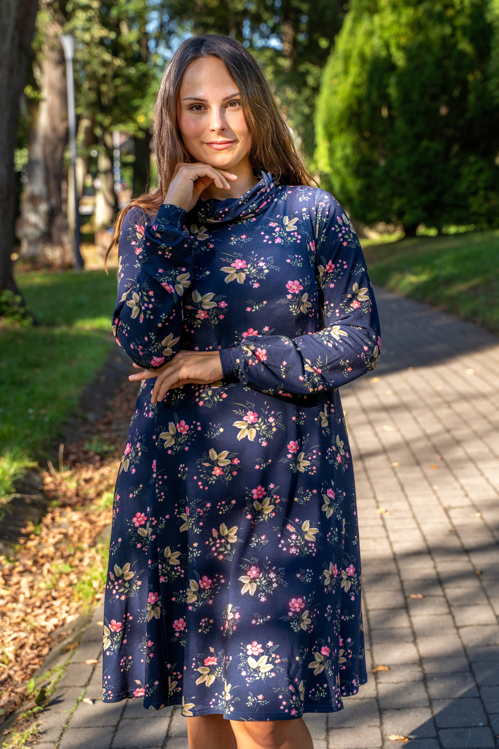 Zimní bambusové kojicí šaty se skrytými zipy – tmavě modré s kvítky