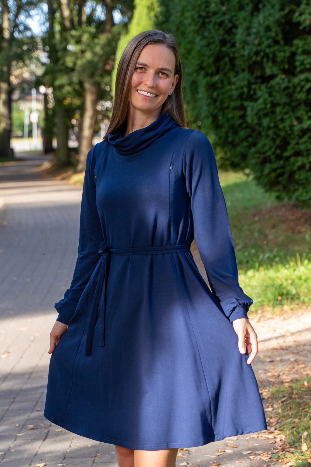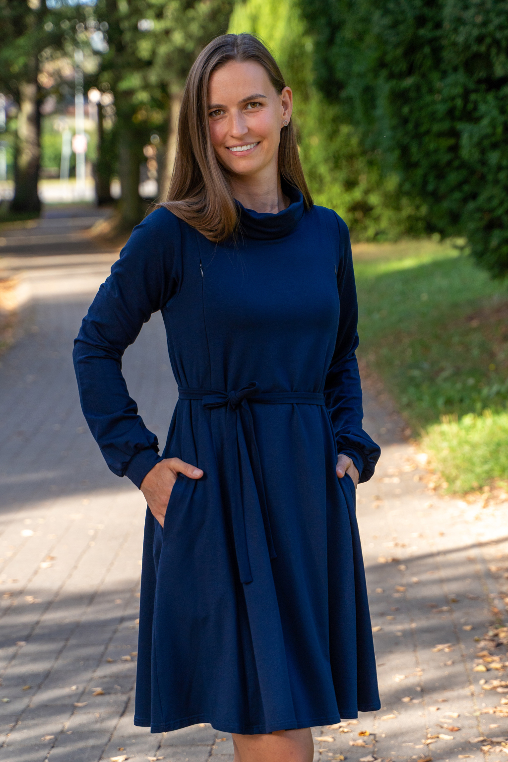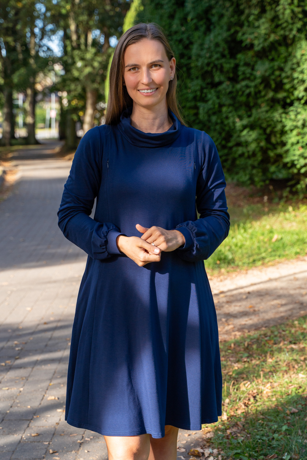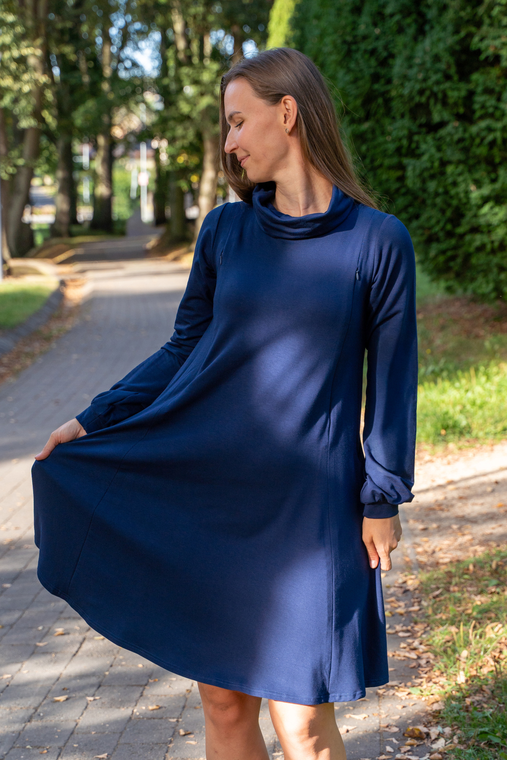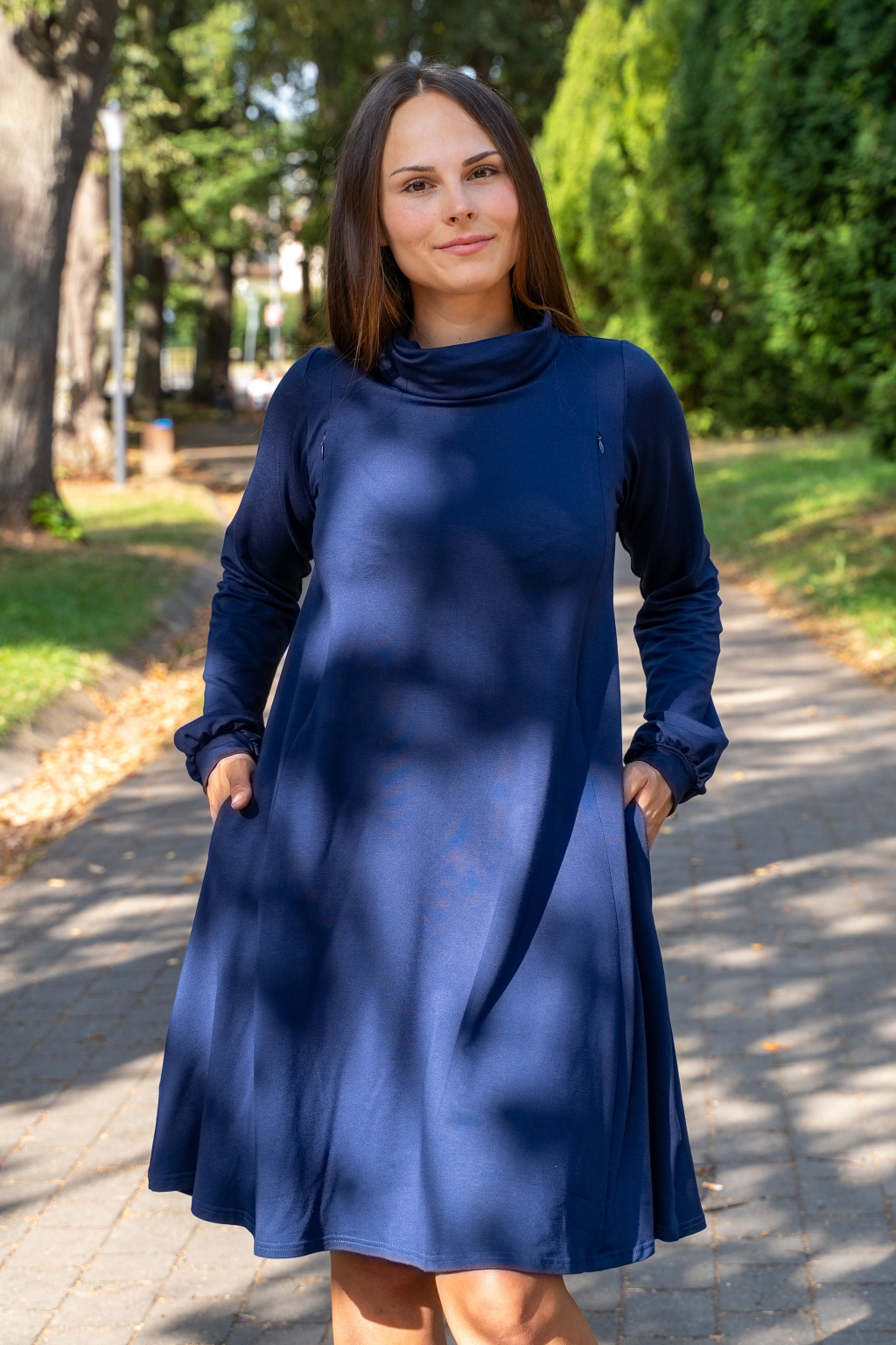 Zimní bambusové kojicí šaty se skrytými zipy – tmavě modré
