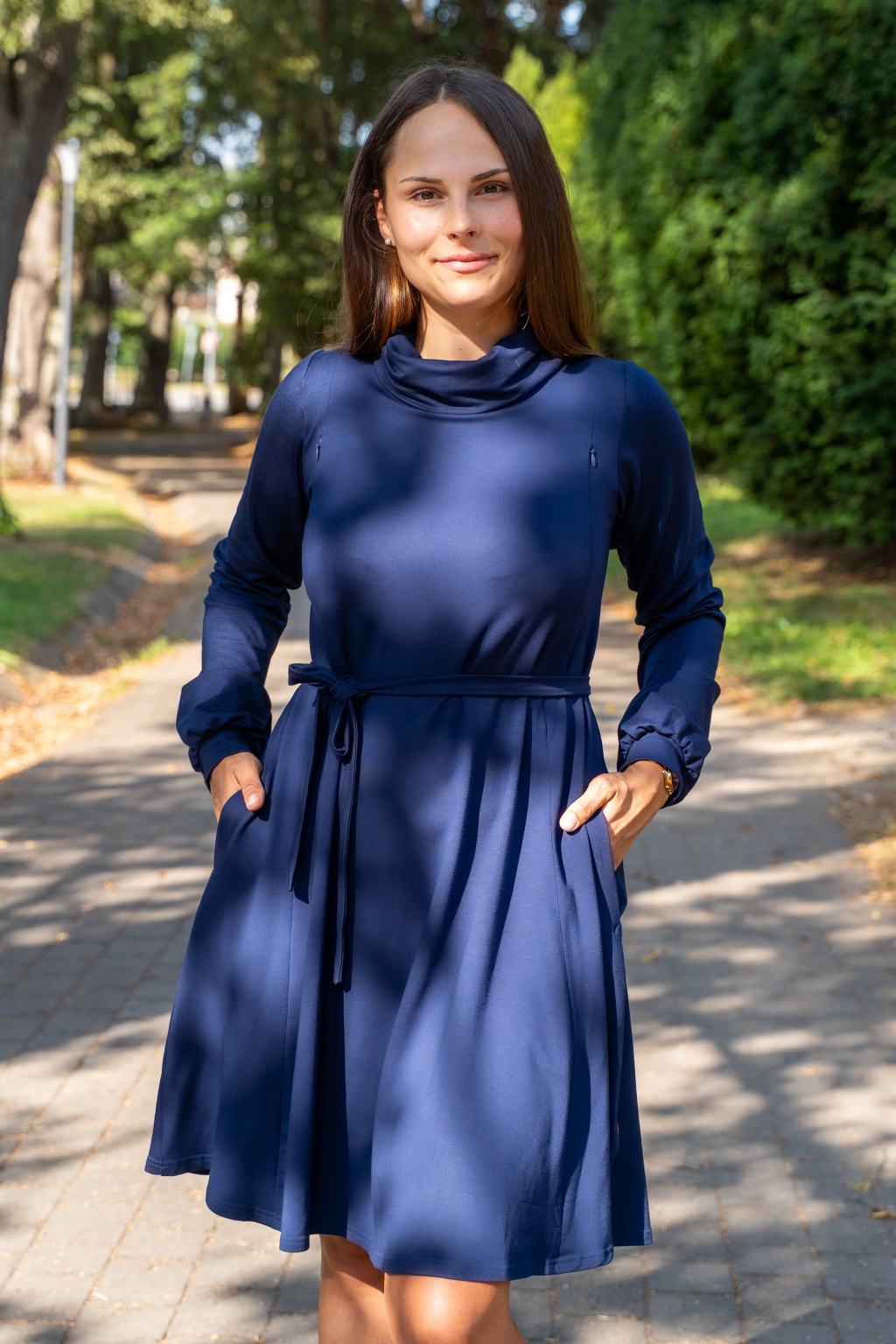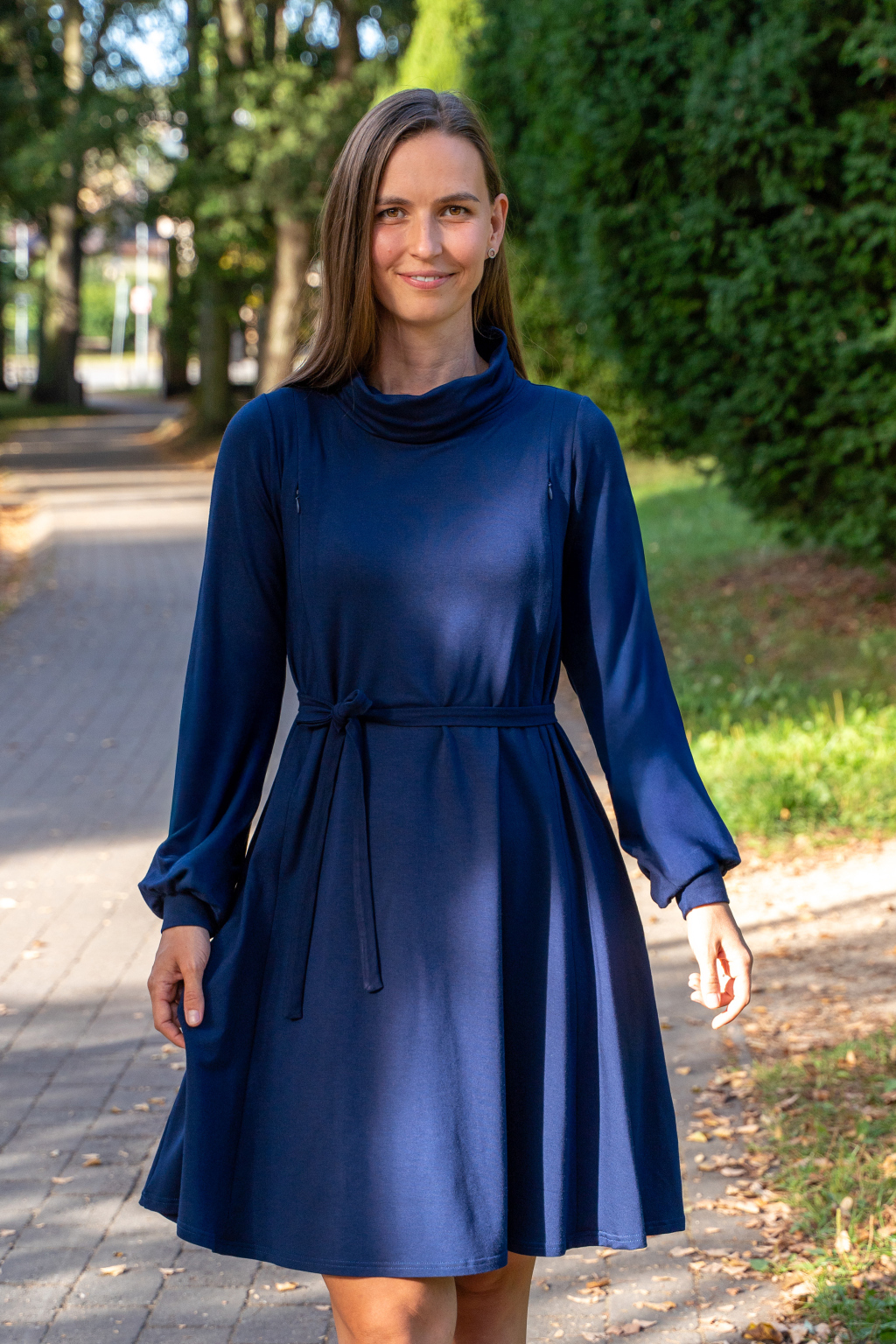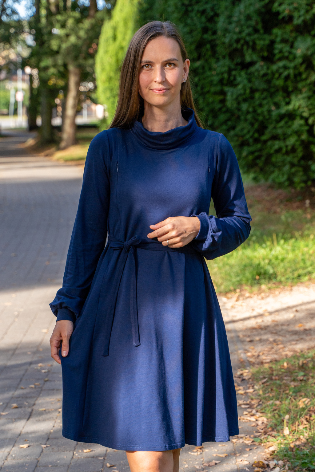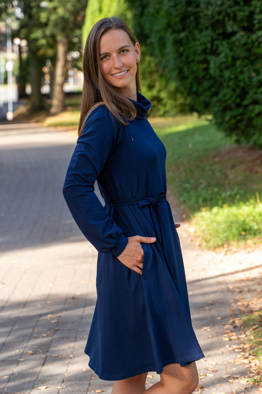 Zimní bambusové kojicí šaty se skrytými zipy – tmavě modré