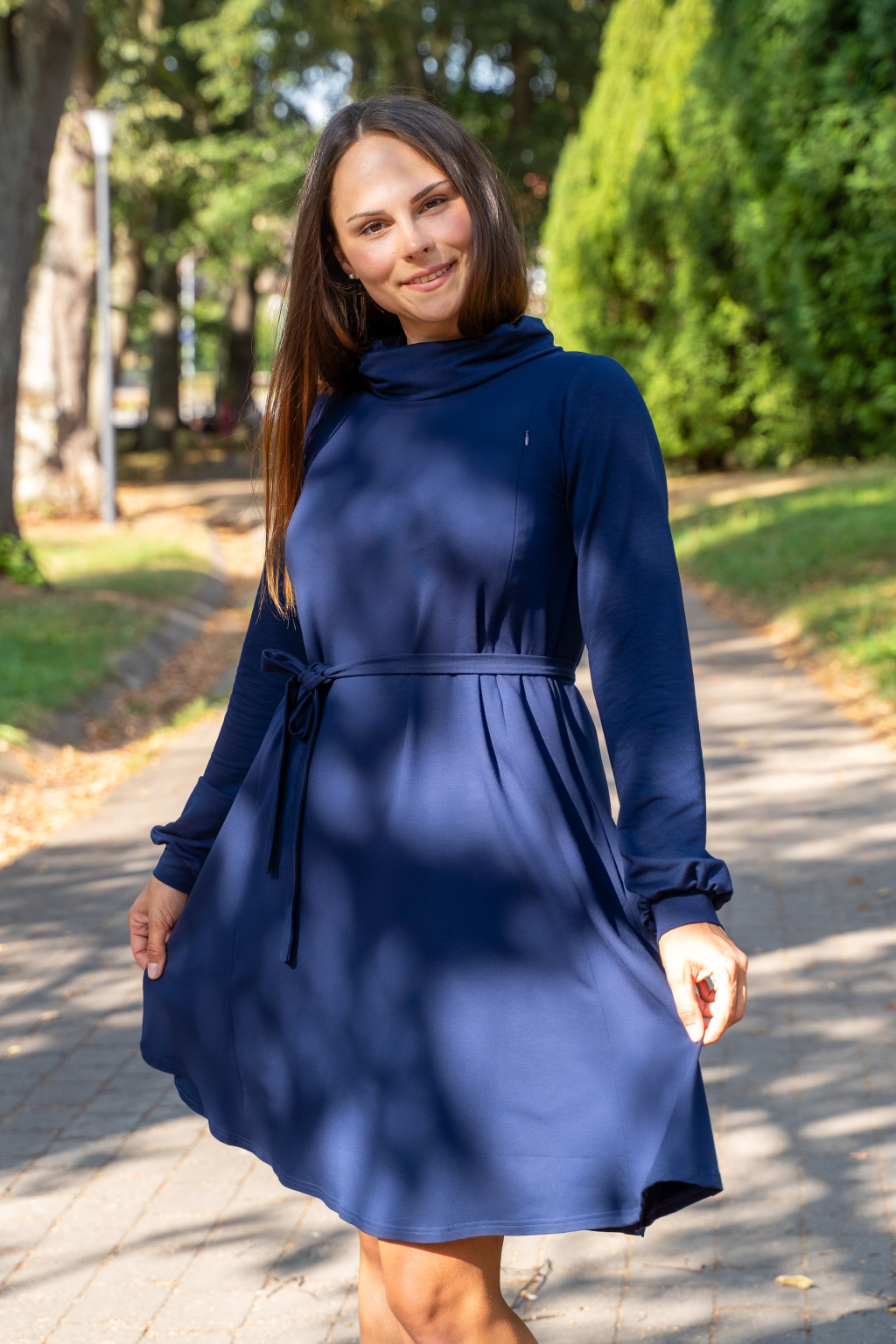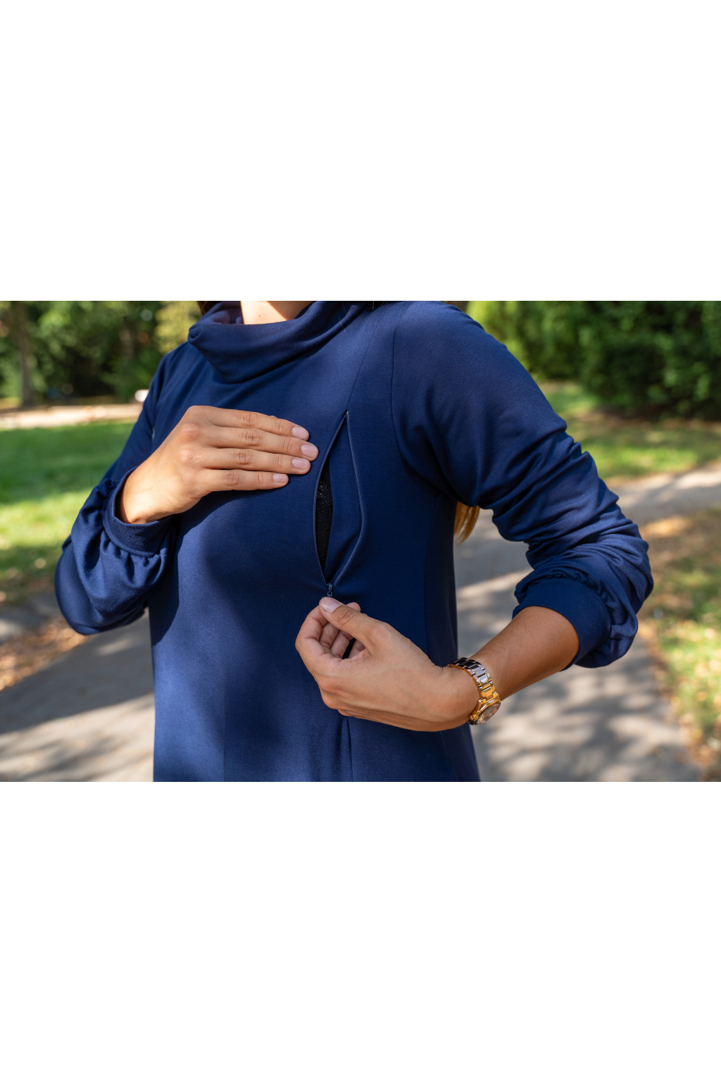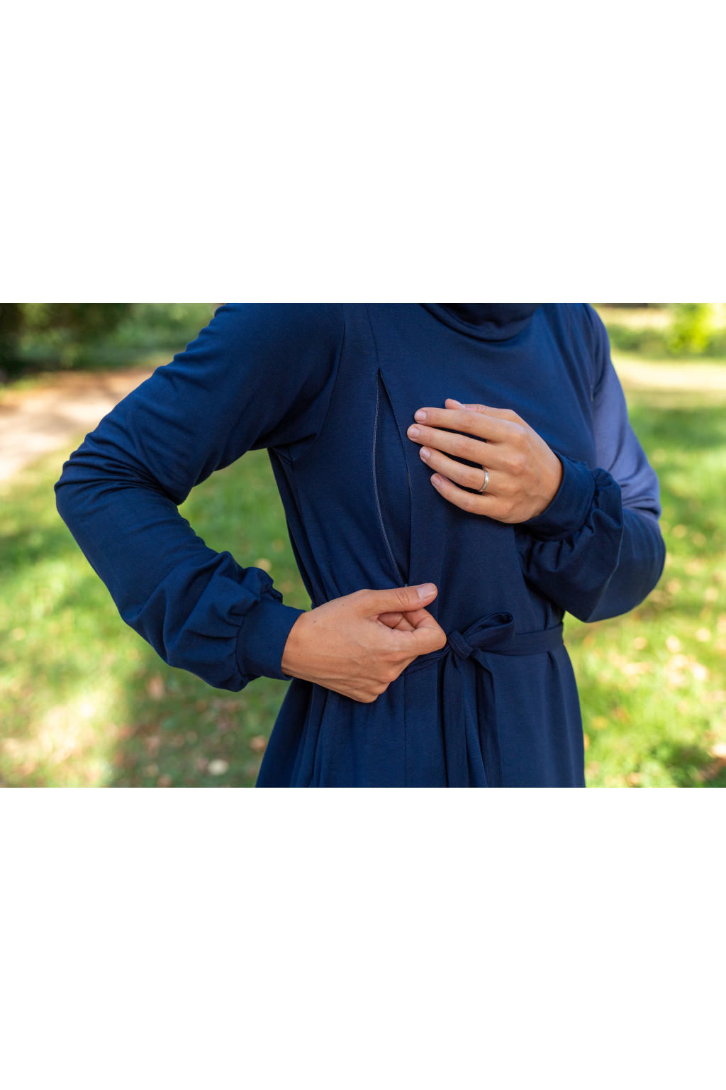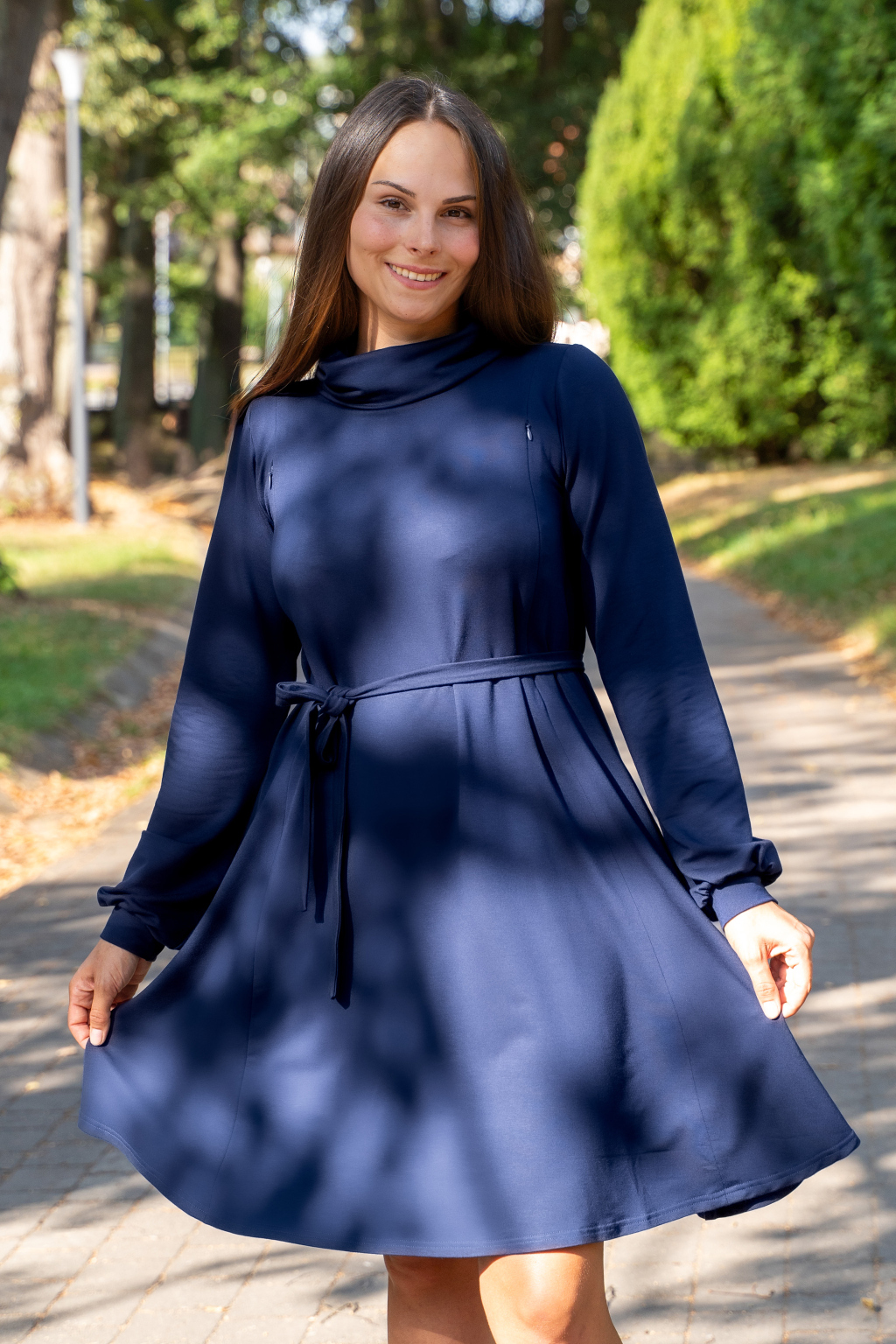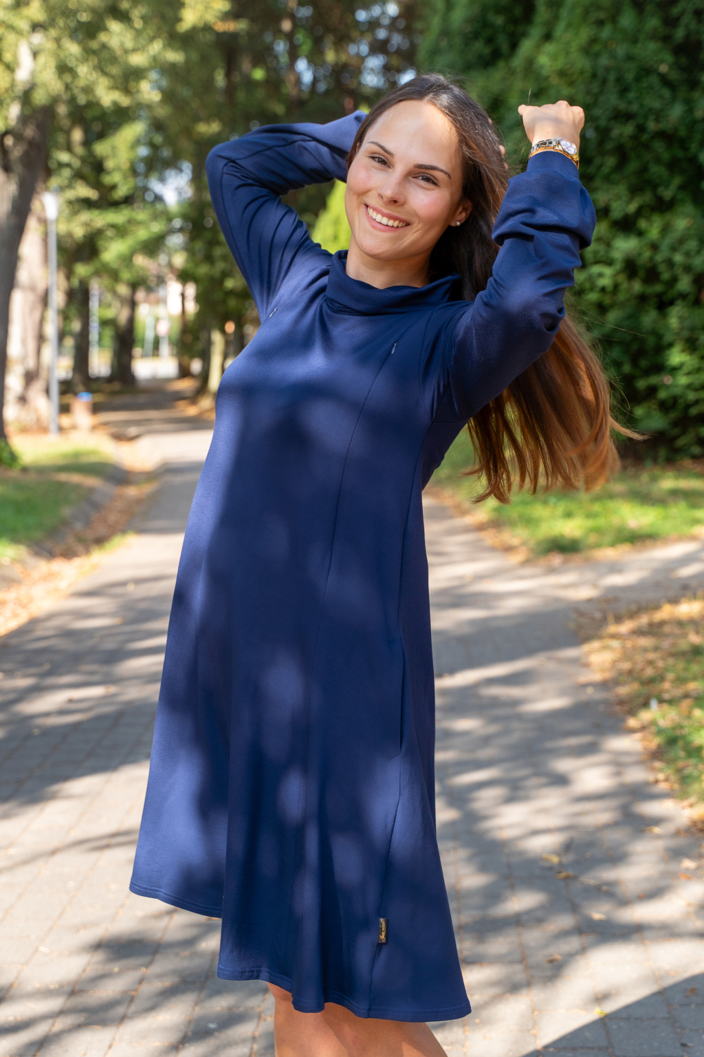 Zimní bambusové kojicí šaty se skrytými zipy – tmavě modré