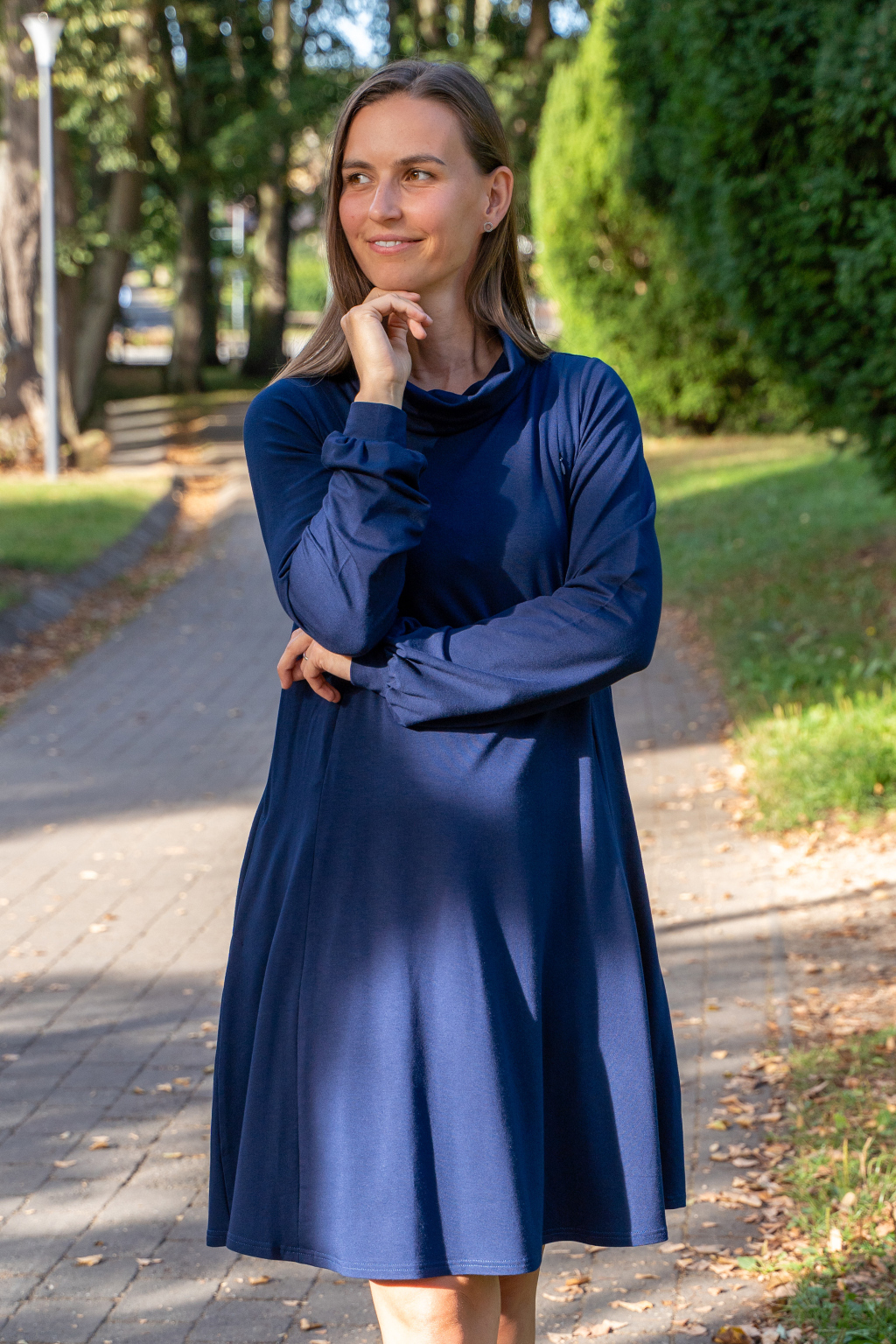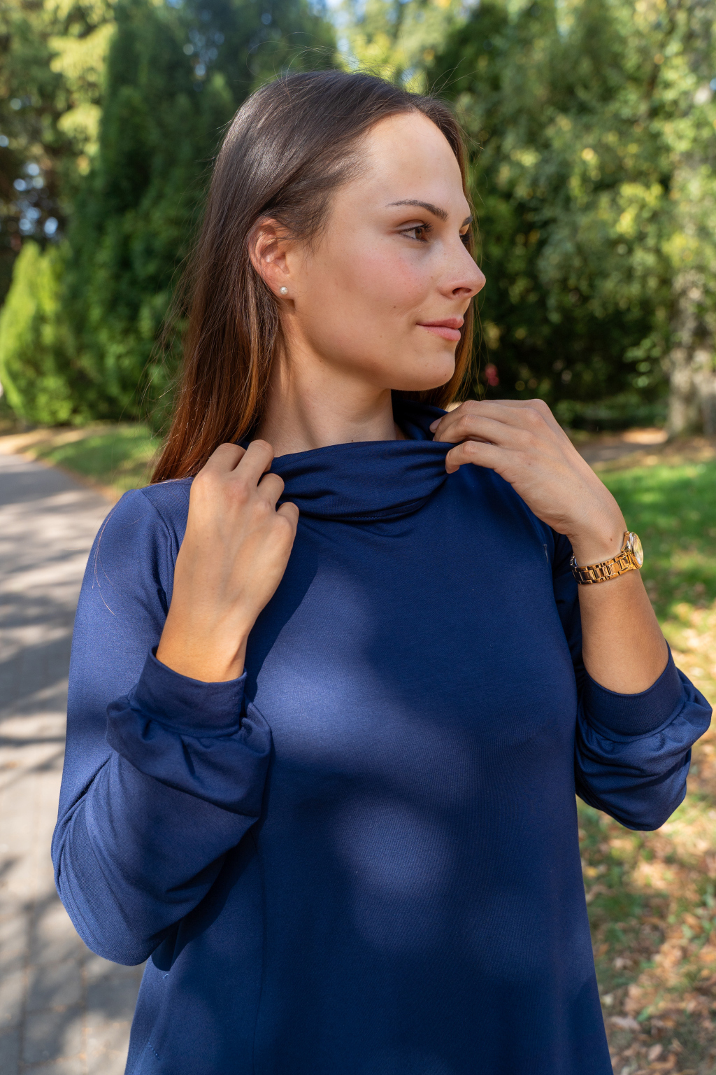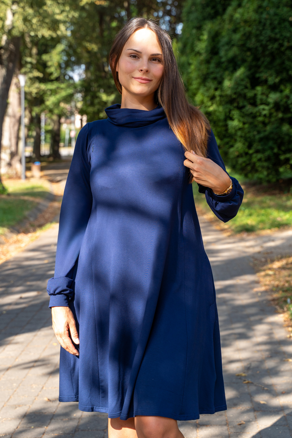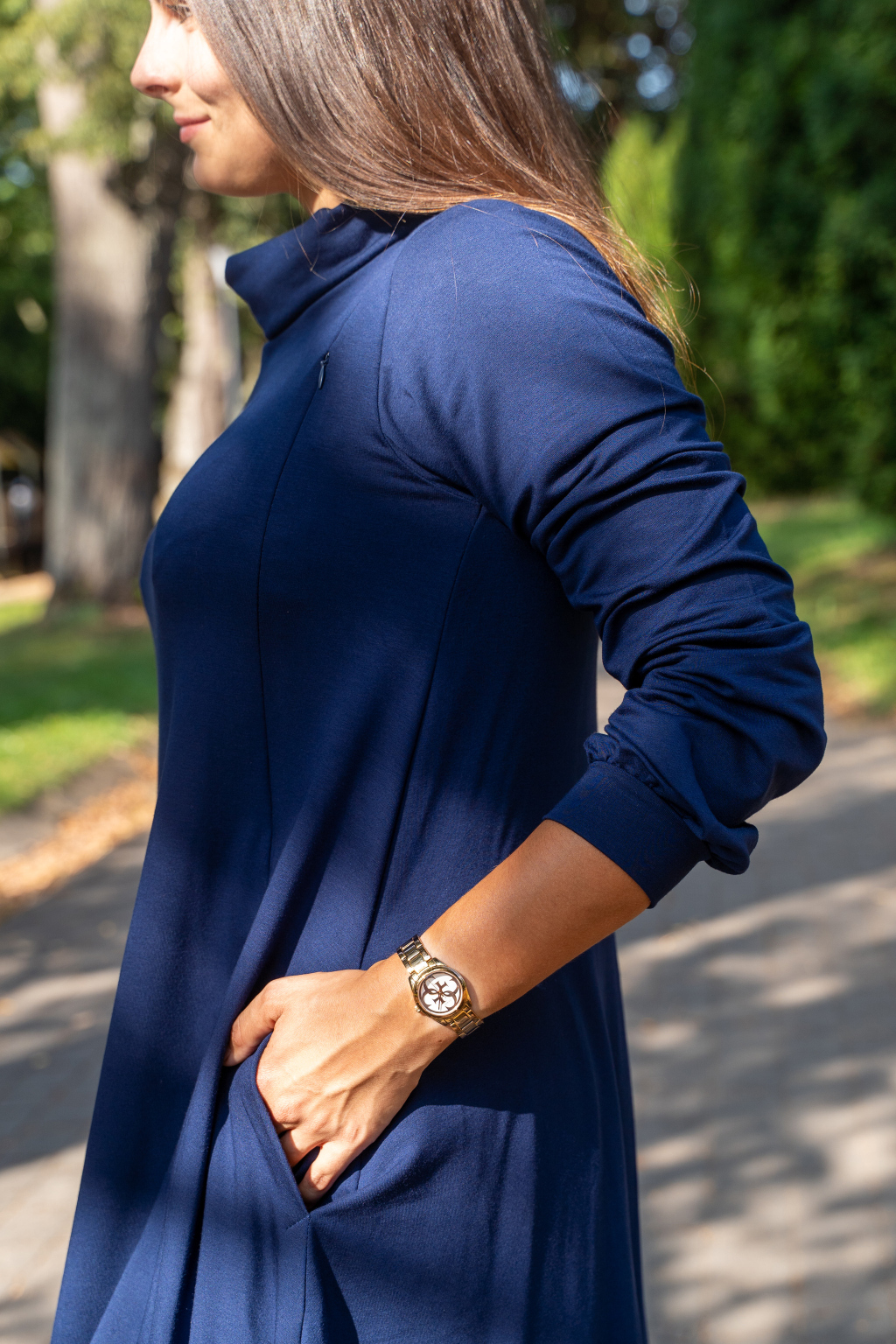 Zimní bambusové kojicí šaty se skrytými zipy – tmavě modré