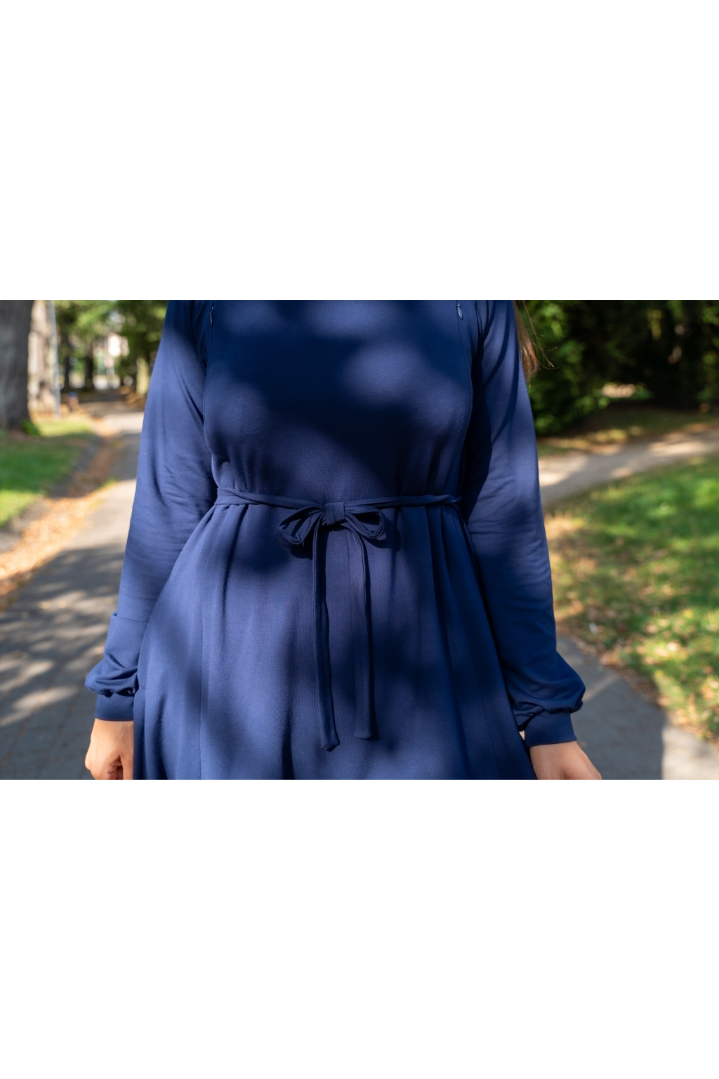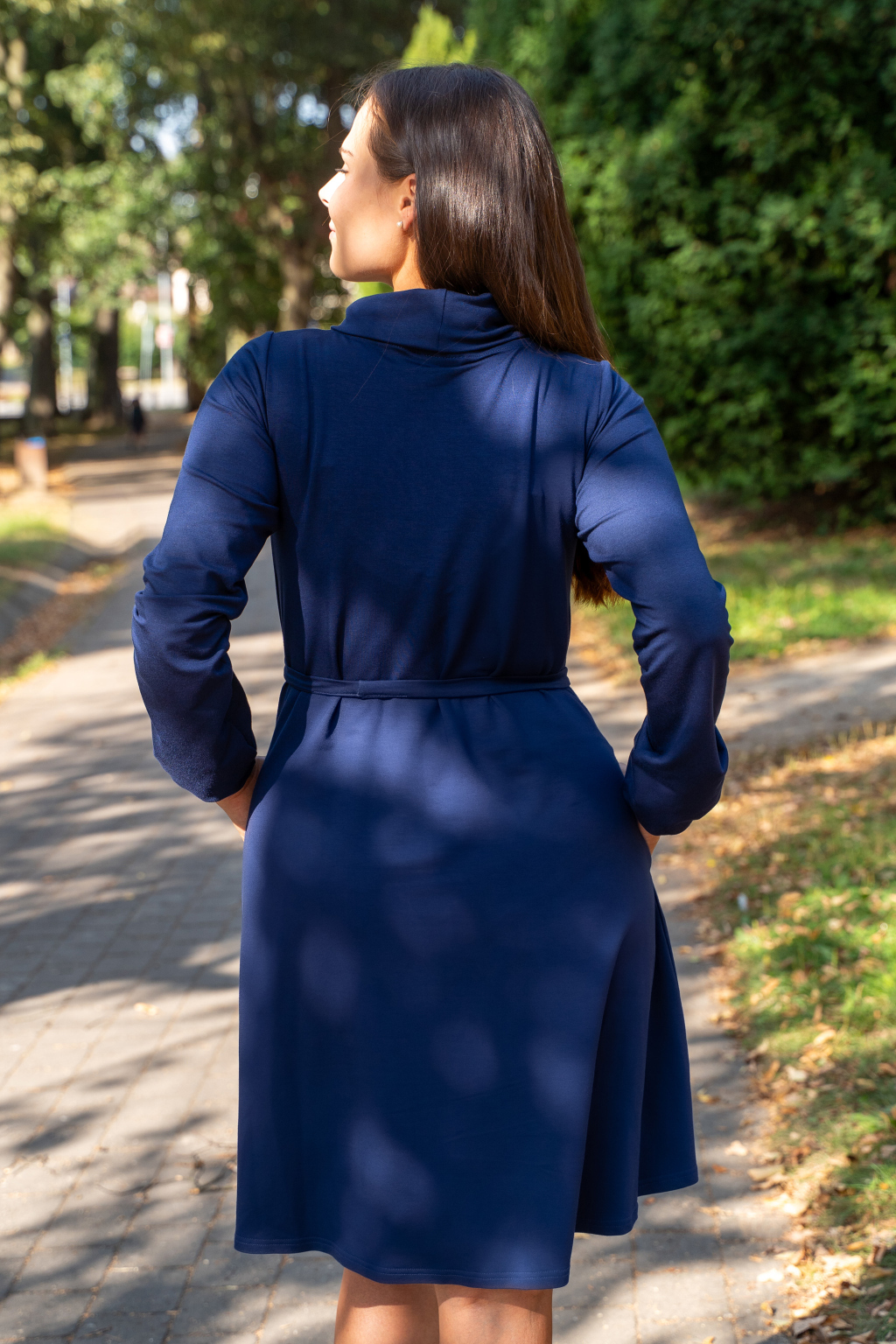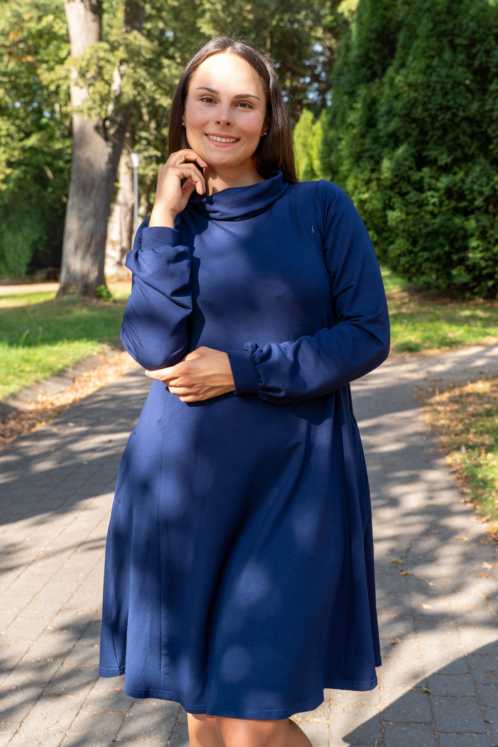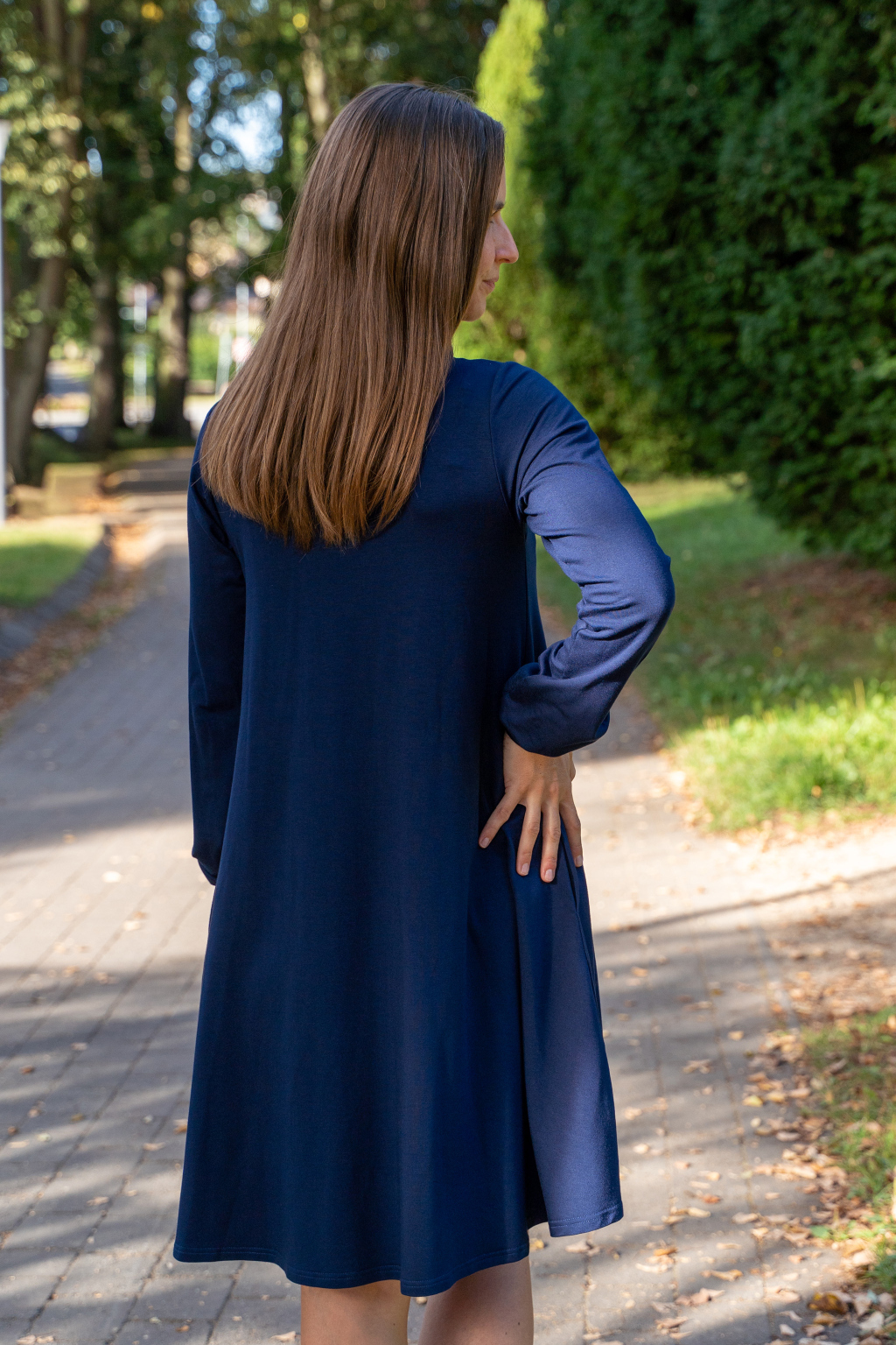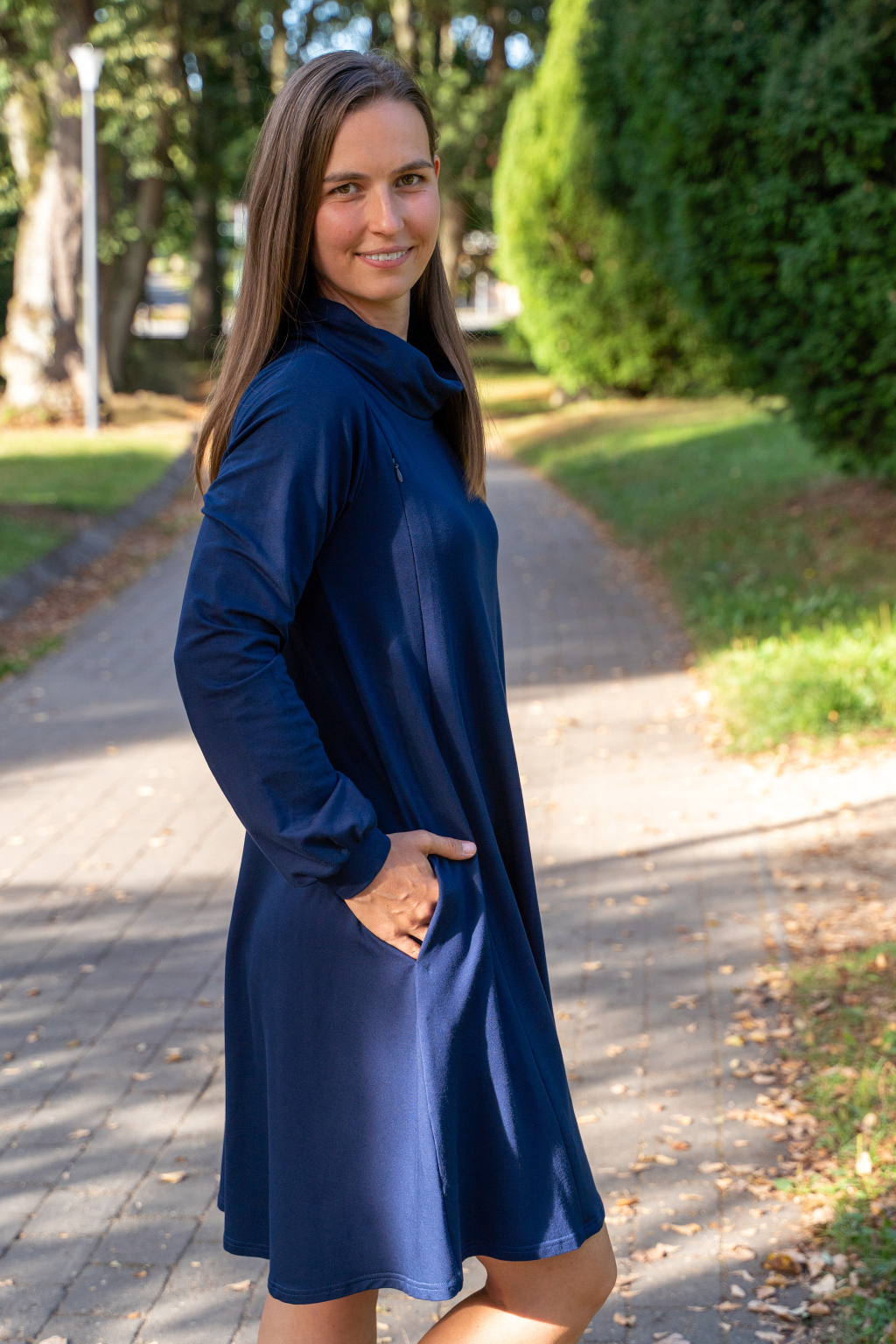 Zimní bambusové kojicí šaty se skrytými zipy – tmavě modré