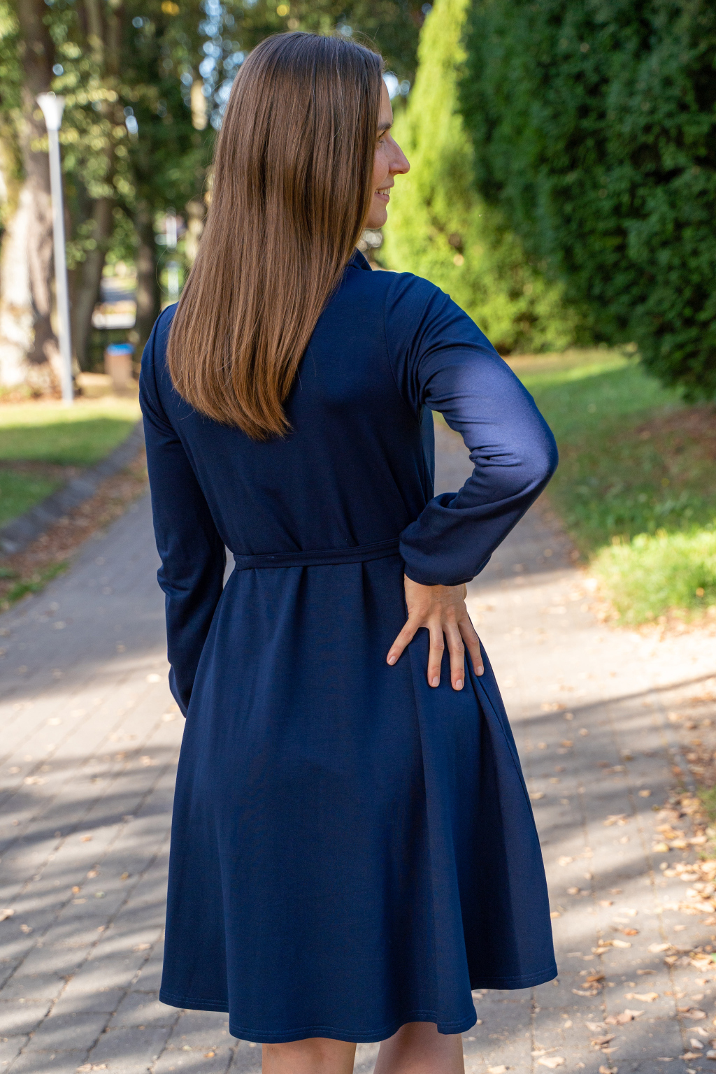 Víte, se kterou barvou nikdy neuděláte chybu? Ano, je to tmavě modrá! 💙 Je jemnější než černá, a přitom stejně nadčasová a univerzální. Lichotí každé postavě, barvě vlasů i očí a působí sofistikovaně. V těchto šatech se můžete ukázat na nóbl plese i v práci – a vždycky to bude skvělá volba. Model Silvia je zkrátka esem v rukávu každého slow fashion šatníku!